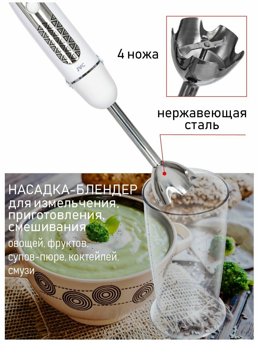 Блендер погружной JVC с измельчителем, 3 насадки, 5 скоростей, режим Турбо, 1200 Вт