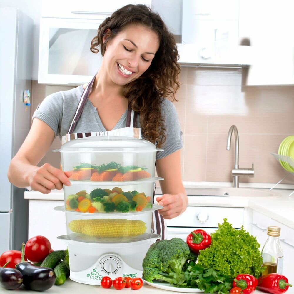 Пароварка электрическая Endever Vita 177, 1000 Вт, 9 литров, таймер автоотключение индикатор нагрева интересное: