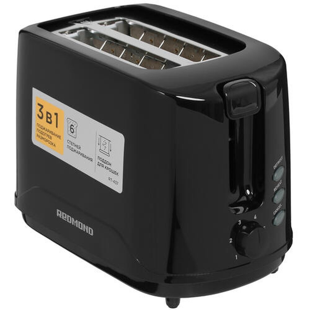Тостер Redmond RT-437 черный, 750 Вт, тостов - 2, подогрев, размораживание
