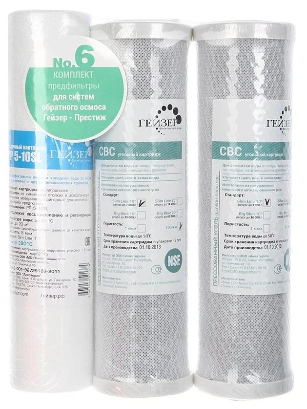 Ниже Вы можете прочитать отзывы на Гейзер Комплект Картриджей №6 (эконом) 3шт. Подходит для системы обратного осмоса, ознакомится с подробными характеристиками, посмотреть интересные обзоры и фотографии на Гейзер Комплект Картриджей №6 (эконом) 3шт. Подходит для системы обратного осмоса.