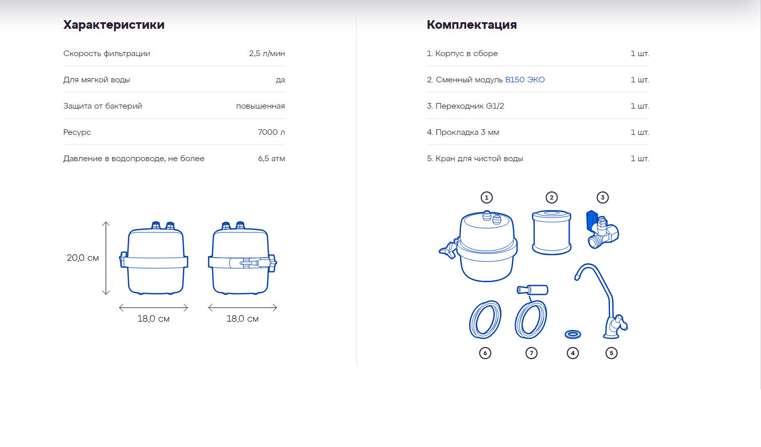 Фильтр под мойку Аквафор В150 Фаворит ЭКО для антибактериальной очистки мягкой воды