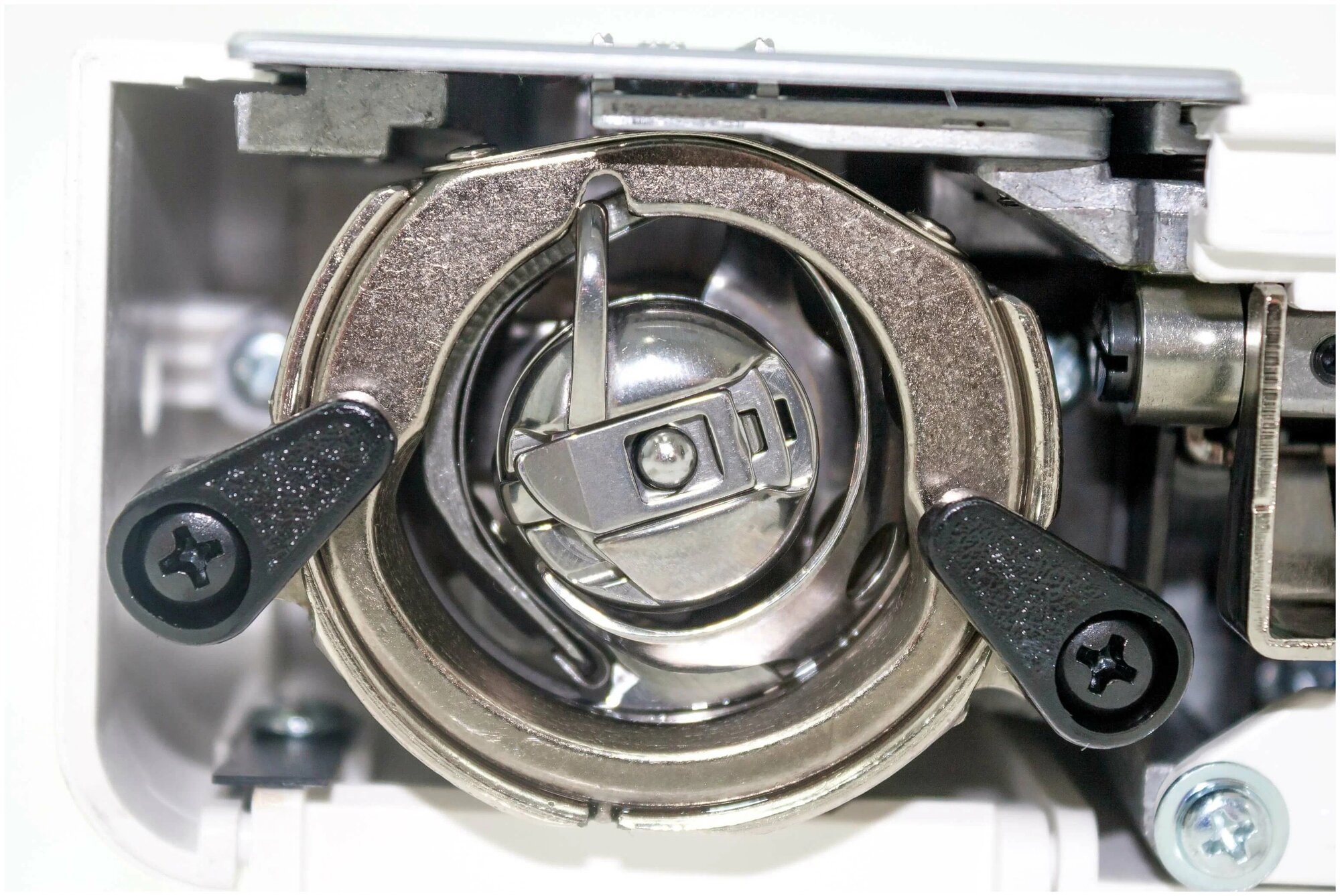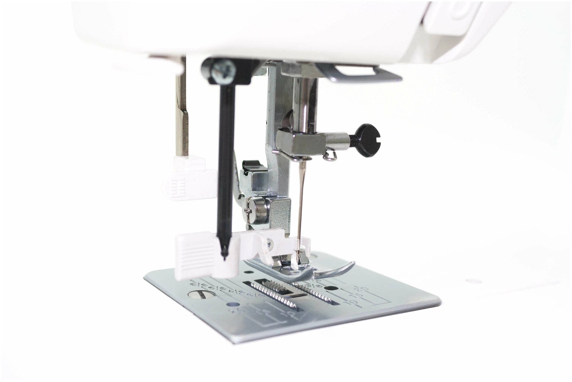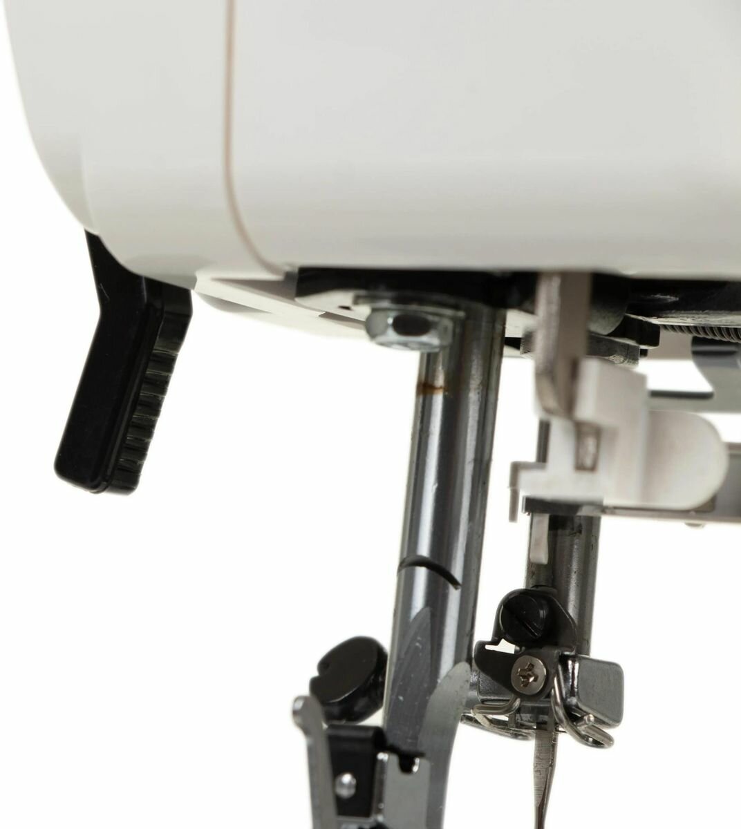 | Минусы: | неудобство работы с рычягами нитковдевателя иостановки ткани |