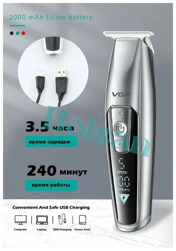 Триммер VGR для стрижки волос V-071, серебристый