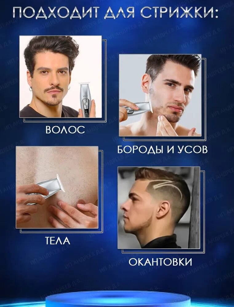 Беспроводной триммер VGR V071 предназначен для стрижки бороды и волос на теле