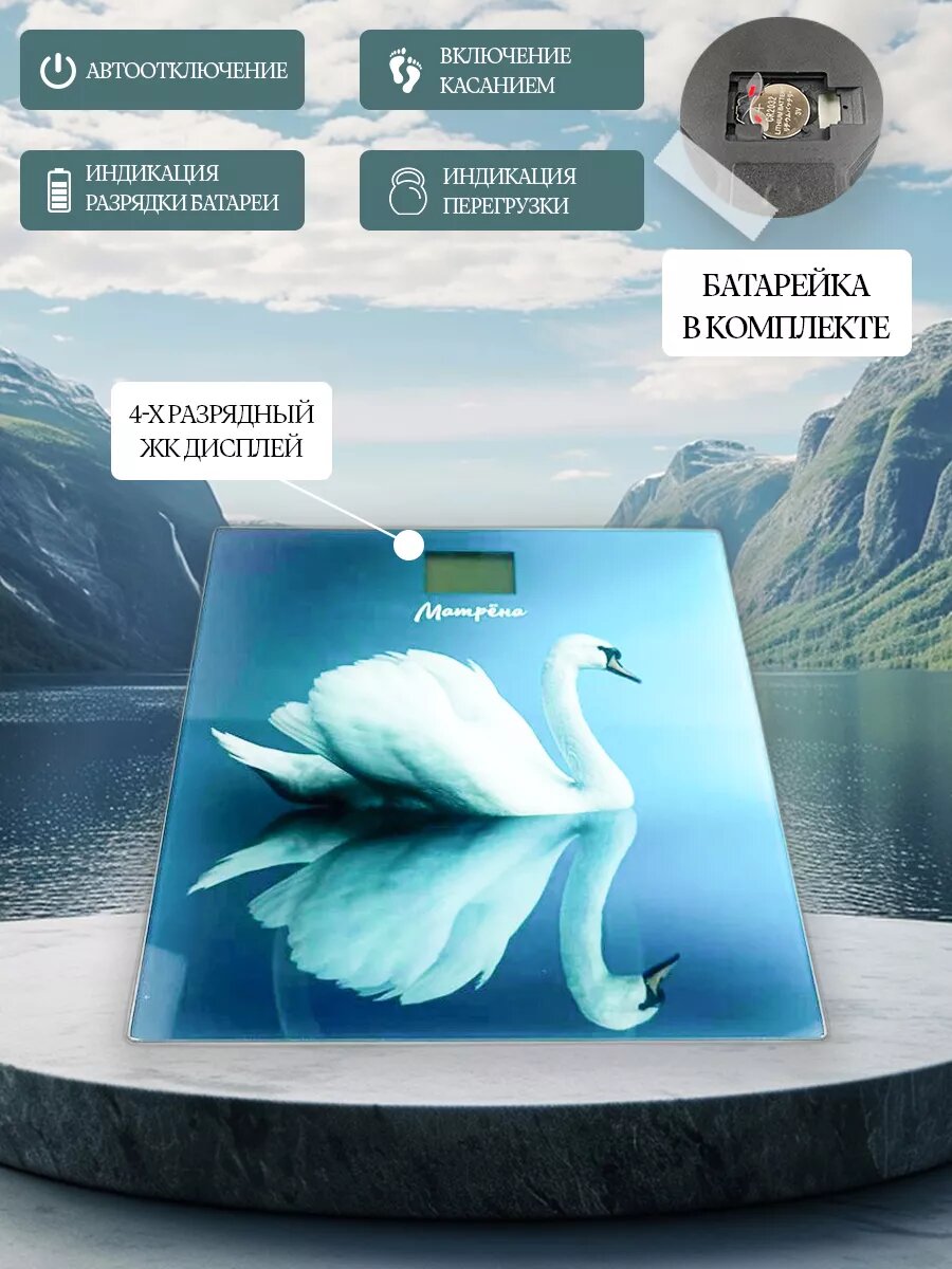 Весы напольные электронные Матрёна МА-090 Лебедь стеклянная поверхность 26х26см нагрузка до 180кг