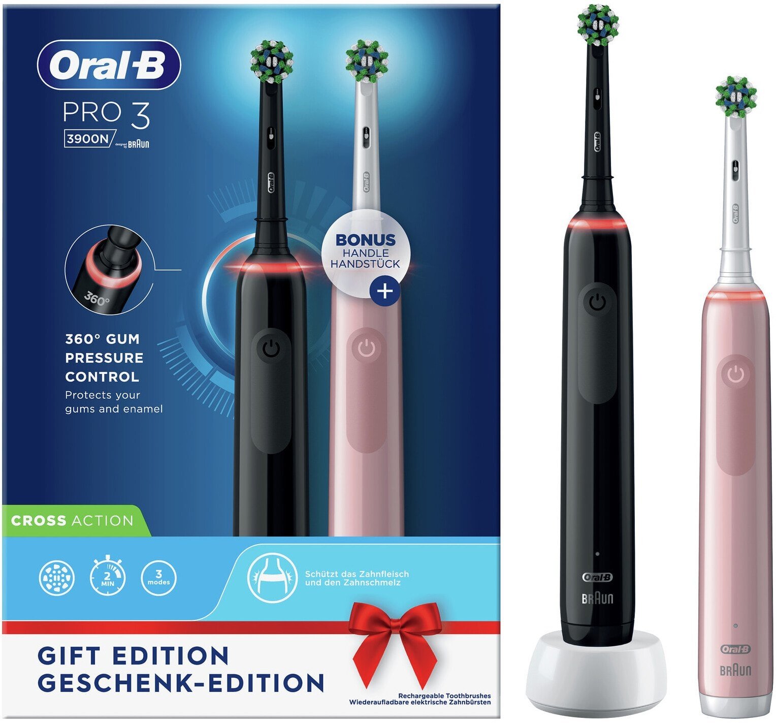 OralB Pro 3 3900 Duo - черный/розовый+ extra brush
