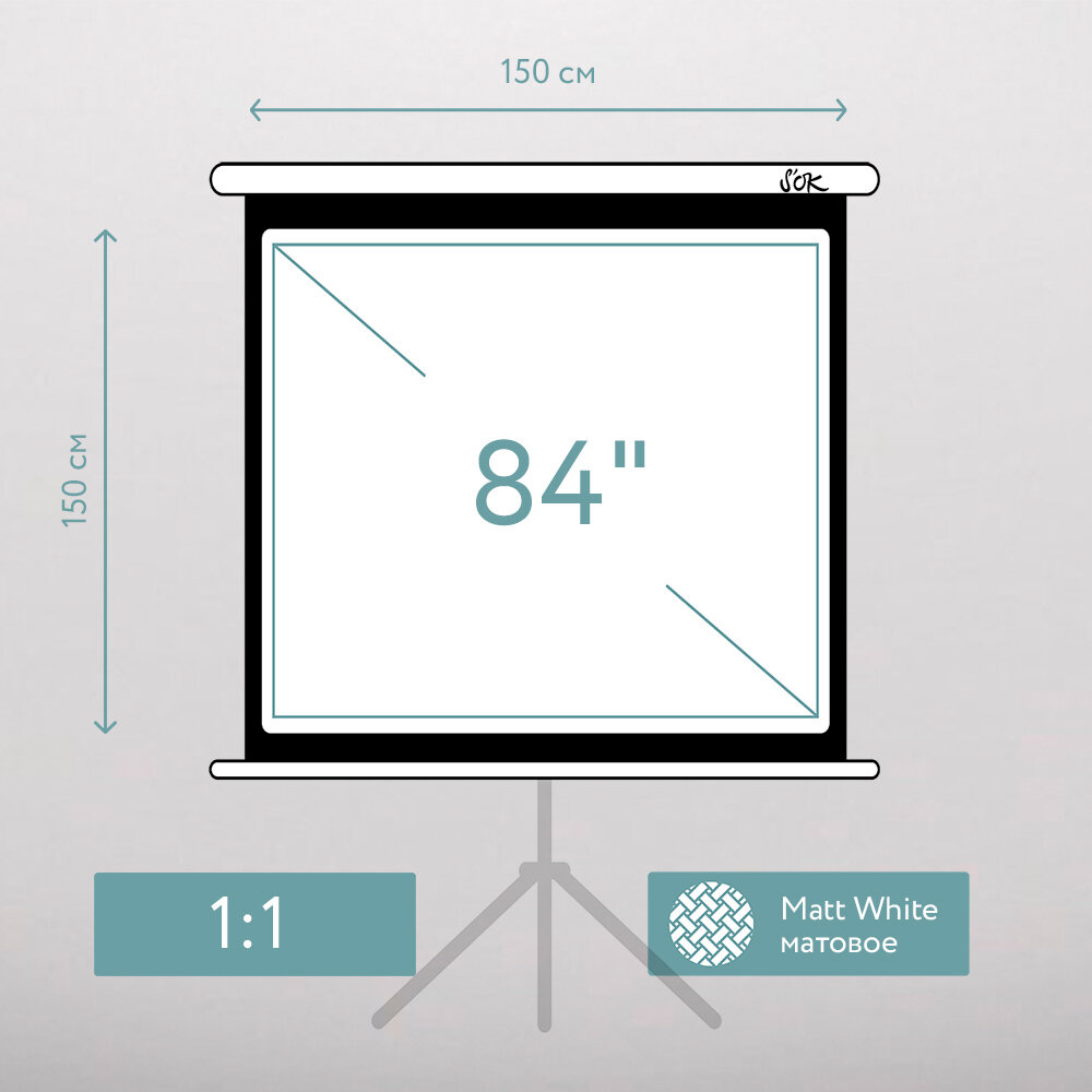 Экран для проектора SOK SCPST-150x150 84 1:1 напольный, на треноге, матовый, белый интересное: