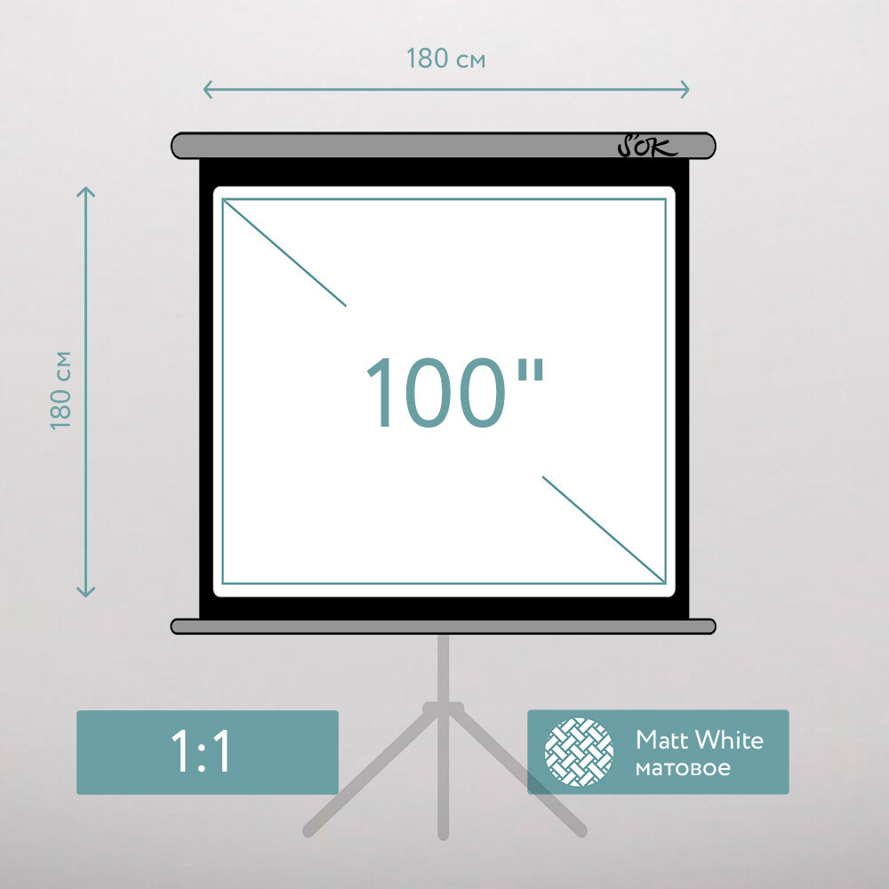 Экран для проектора SOK SCPST-180x180GR 100 1:1 напольный, на треноге, матовый, серый интересное: