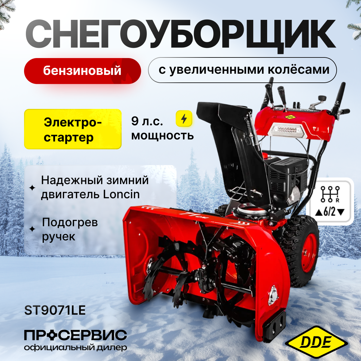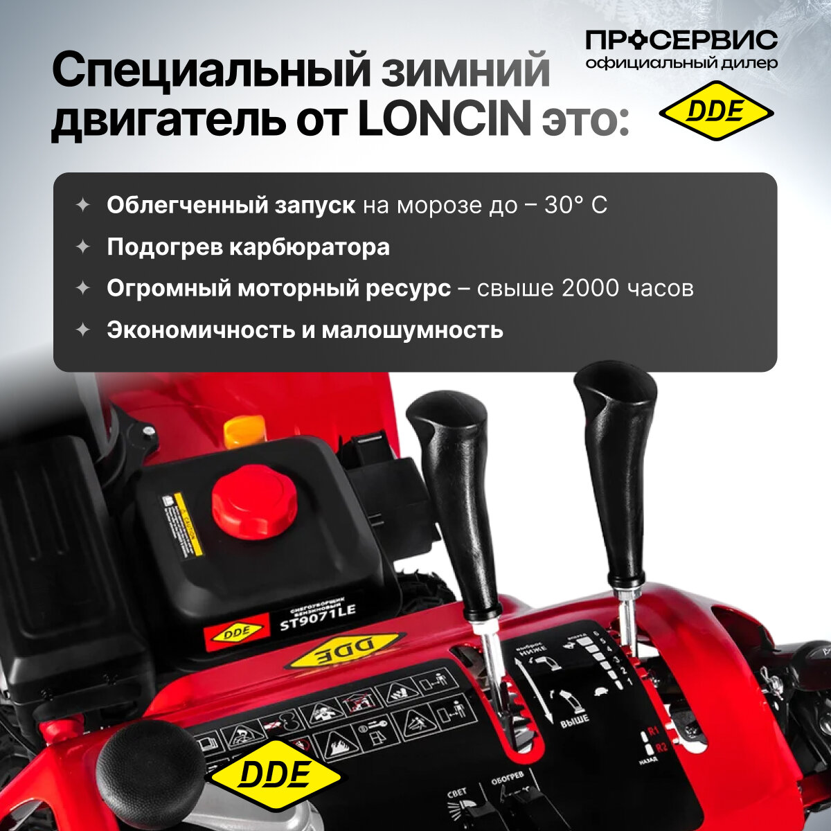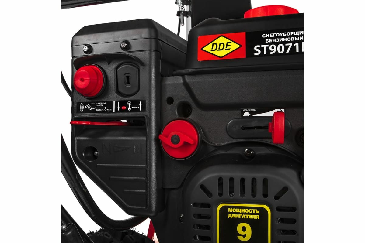 Снегоуборщик DDE ST9071LE (двигатель Loncin "SnowEngine" 9 л.с, 28", 6 вперёд/2 назад, 15" колёса, эл. старт, LED фара, управление выбросом на панели)