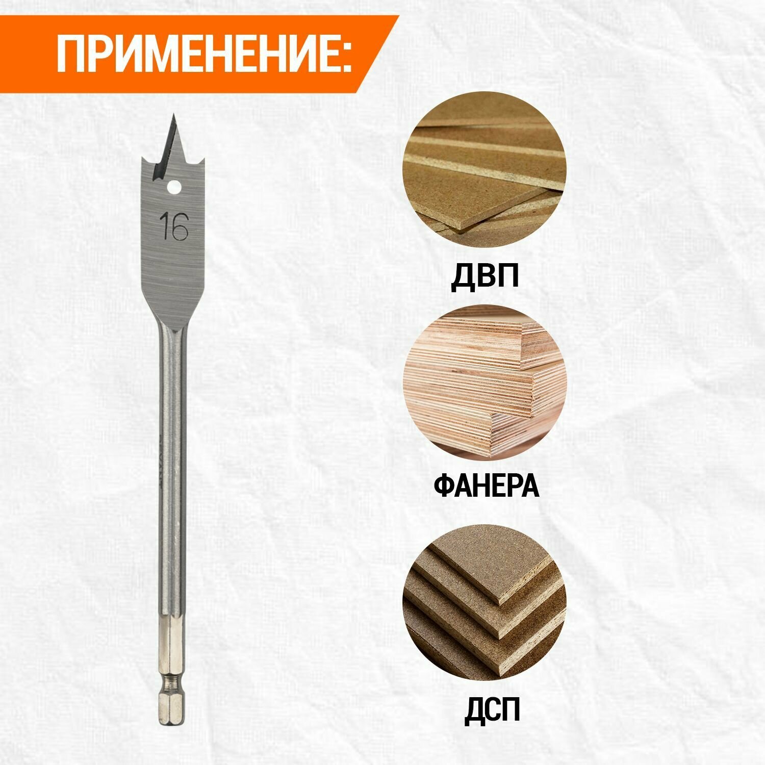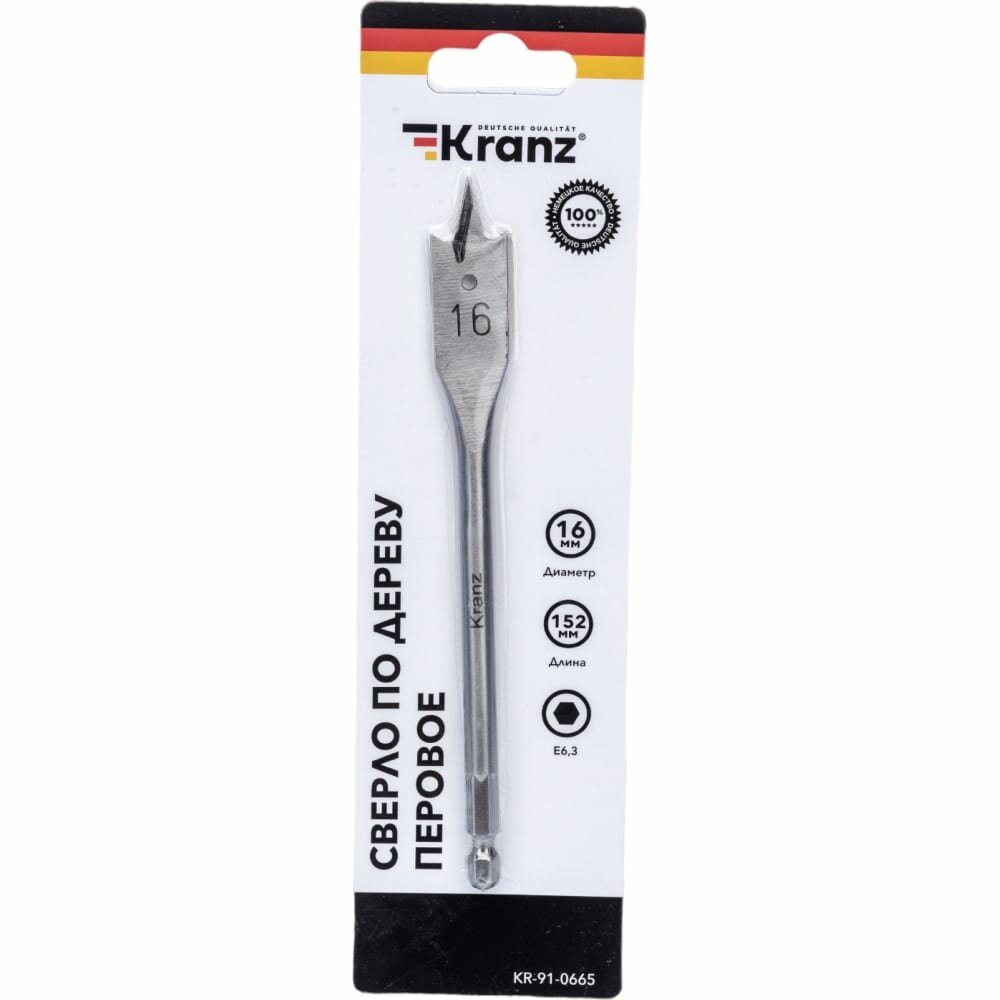 Сверло перовое по дереву 16х152 мм (шестигранный хвостовик) Kranz 1 шт арт. KR-91-0665