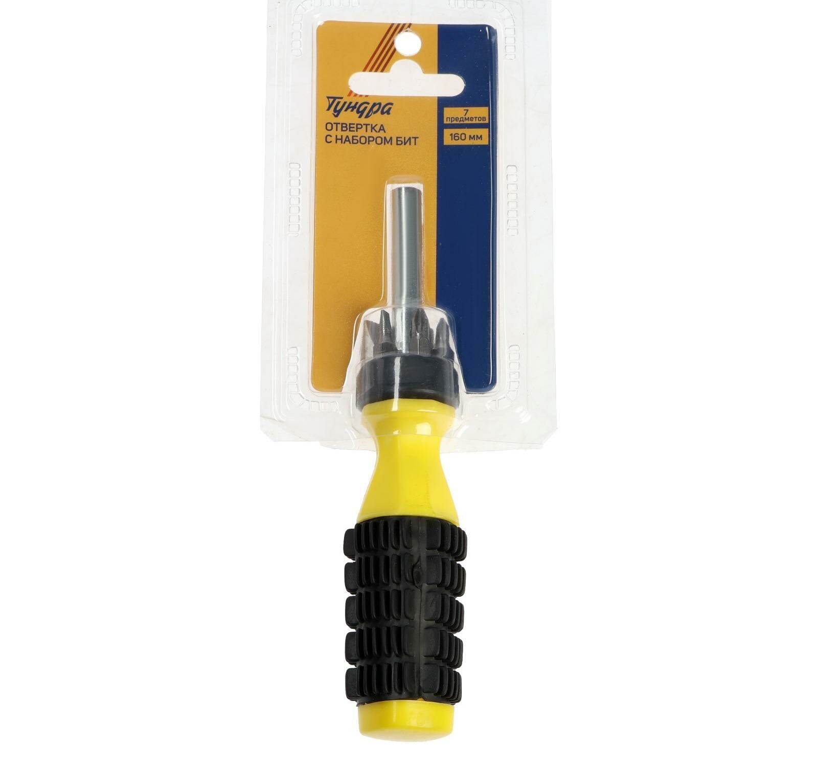 Отвертка с набором бит Тундра, 160 мм, 7 предметов в упаковке интересное: