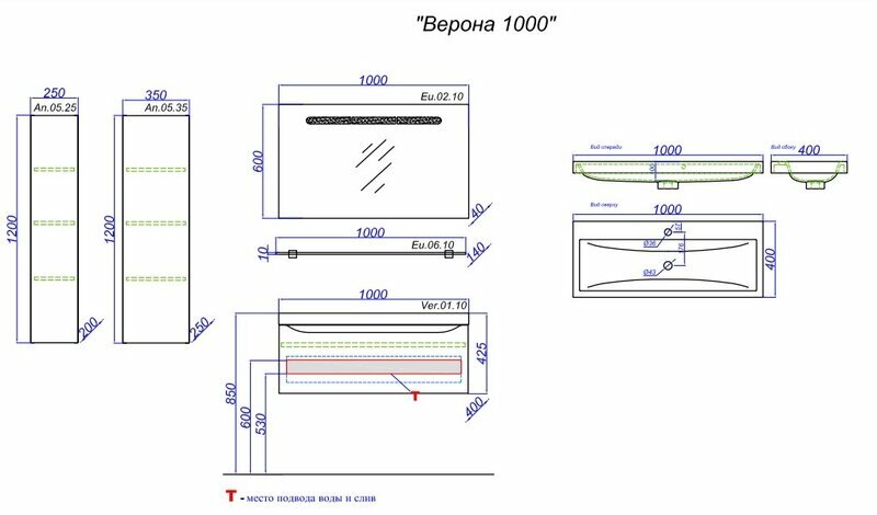 Тумба под раковину Aqwella 5 Stars Верона 100 Ver.01.10/A