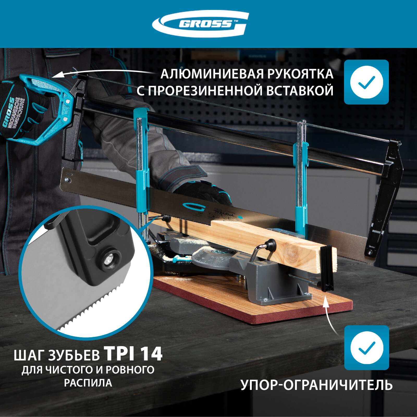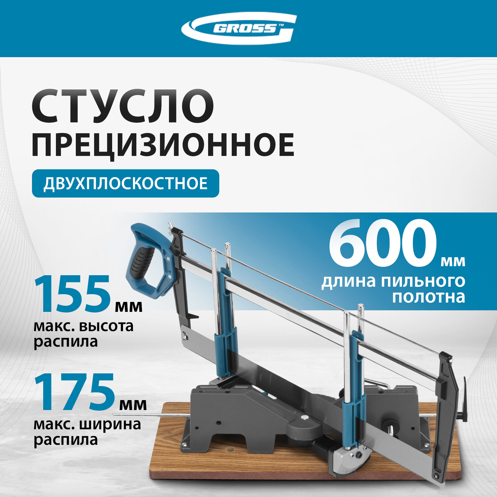 Стусло прецизионное, двухплоскостное, пила 600 мм, две прижимные струбцины, ограничительный упор Gross GROSS