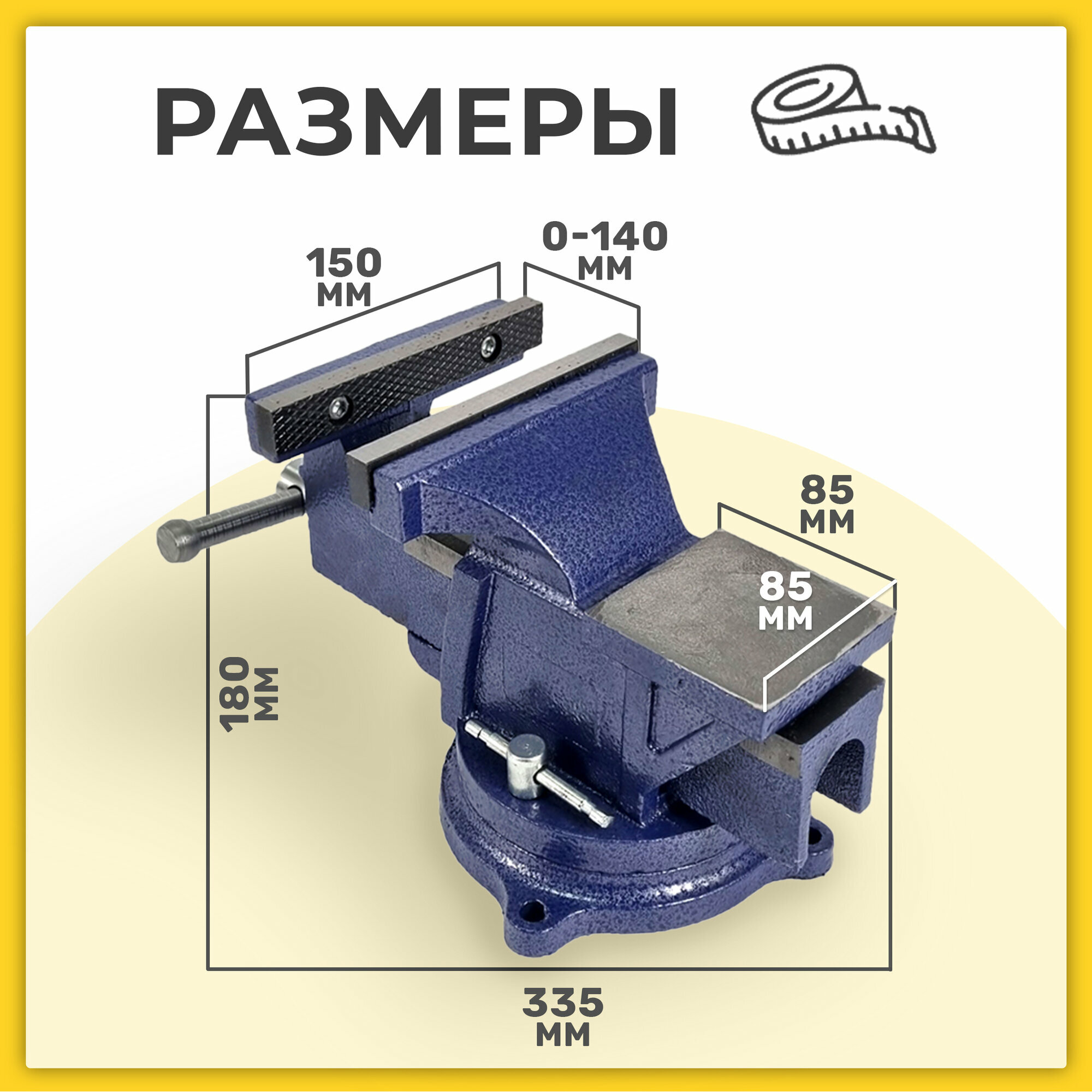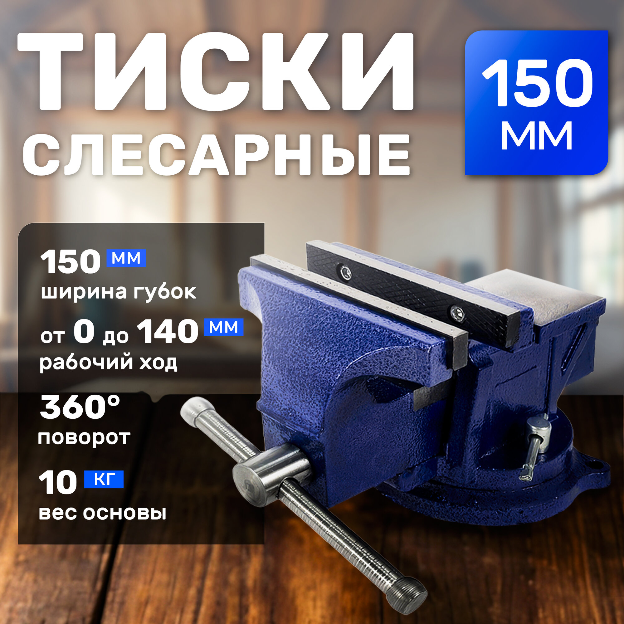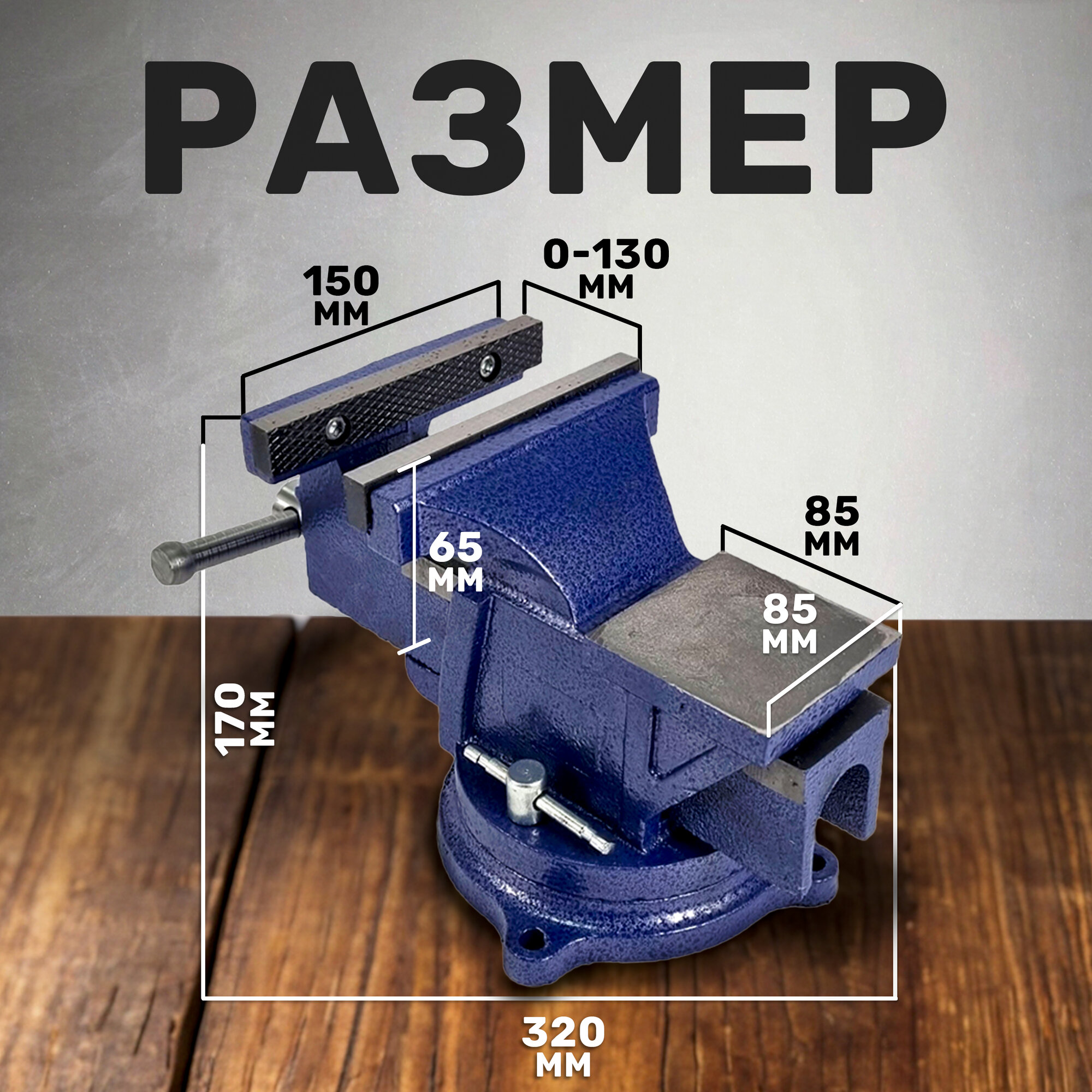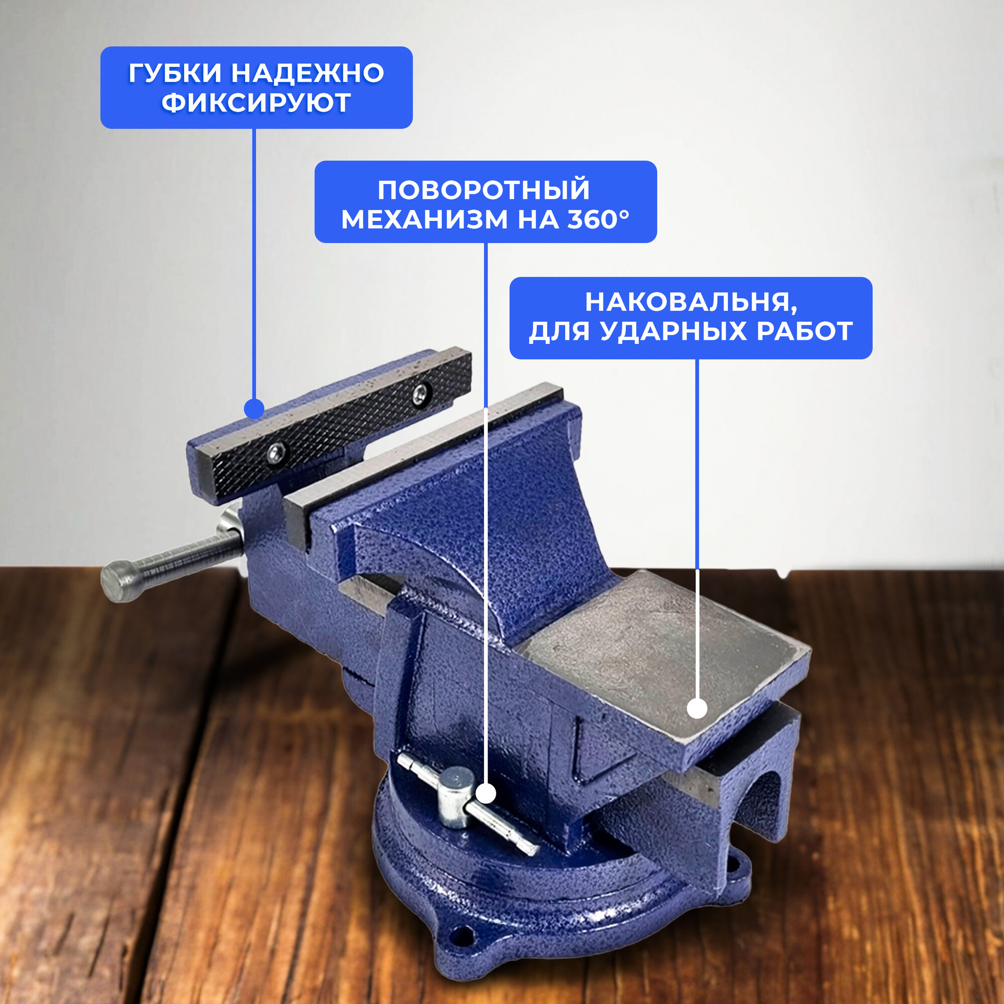 Тиски слесарные Варяг с поворотным механизмом 150 мм / настольные с наковальней, ударопрочные, чугунные, синие