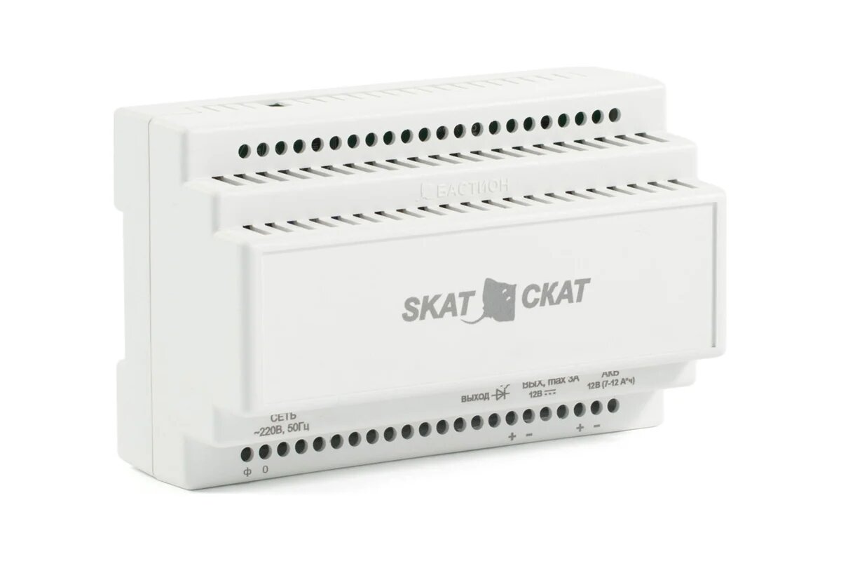 Бастион SKAT-12-3.0 DIN (скат ИБП-12/3-DIN) источник питания 12В 3А пластиковый корпус под DIN рейку 35 мм