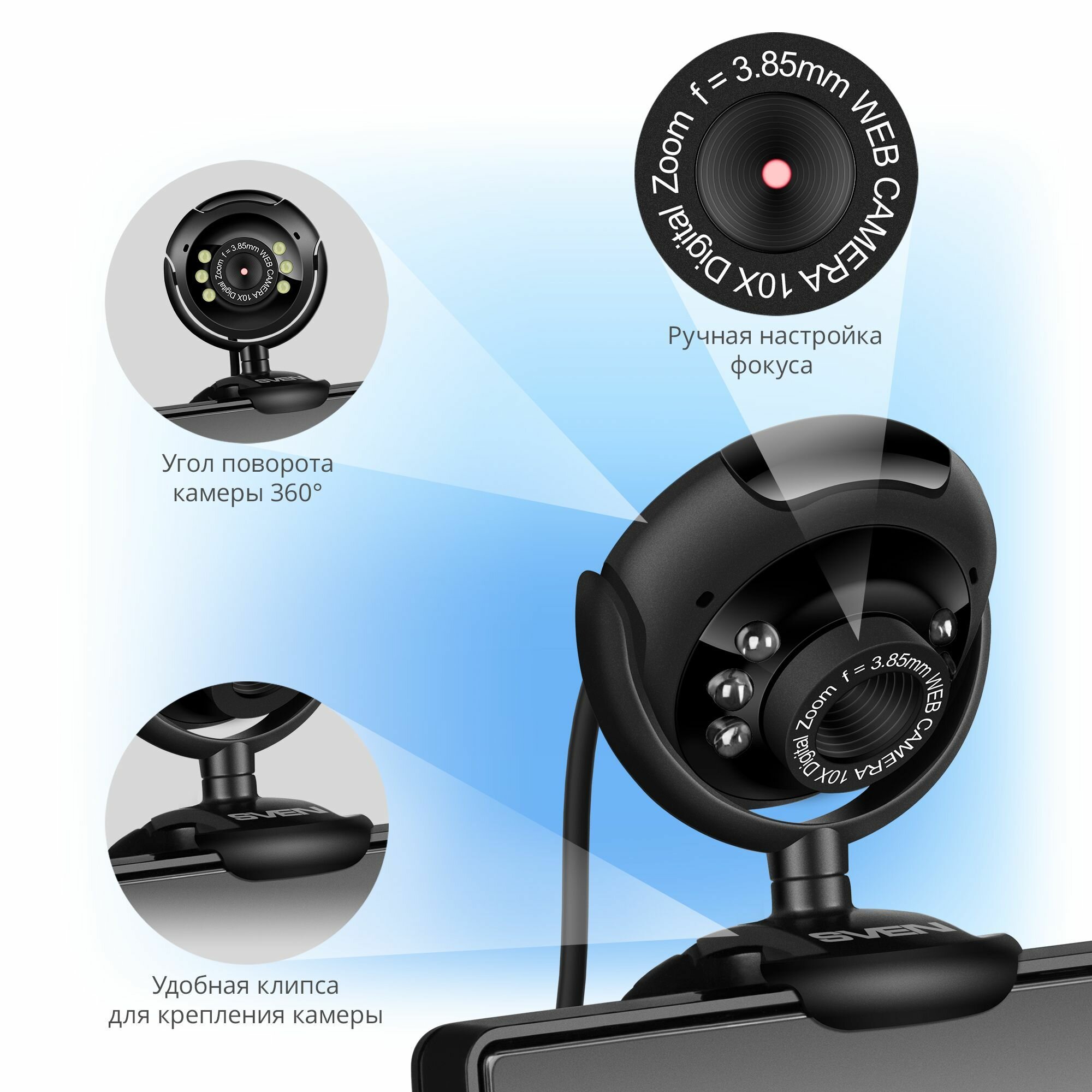 Веб-камера Sven IC-302, черный Разрешение веб-камеры: 640x480 px интересное: