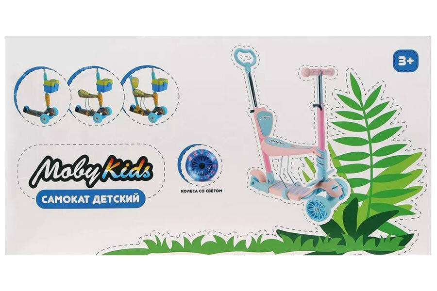 НЕ цветная коробка Самокат Moby Kids Pony 3 в 1, свет. кол., розовый
