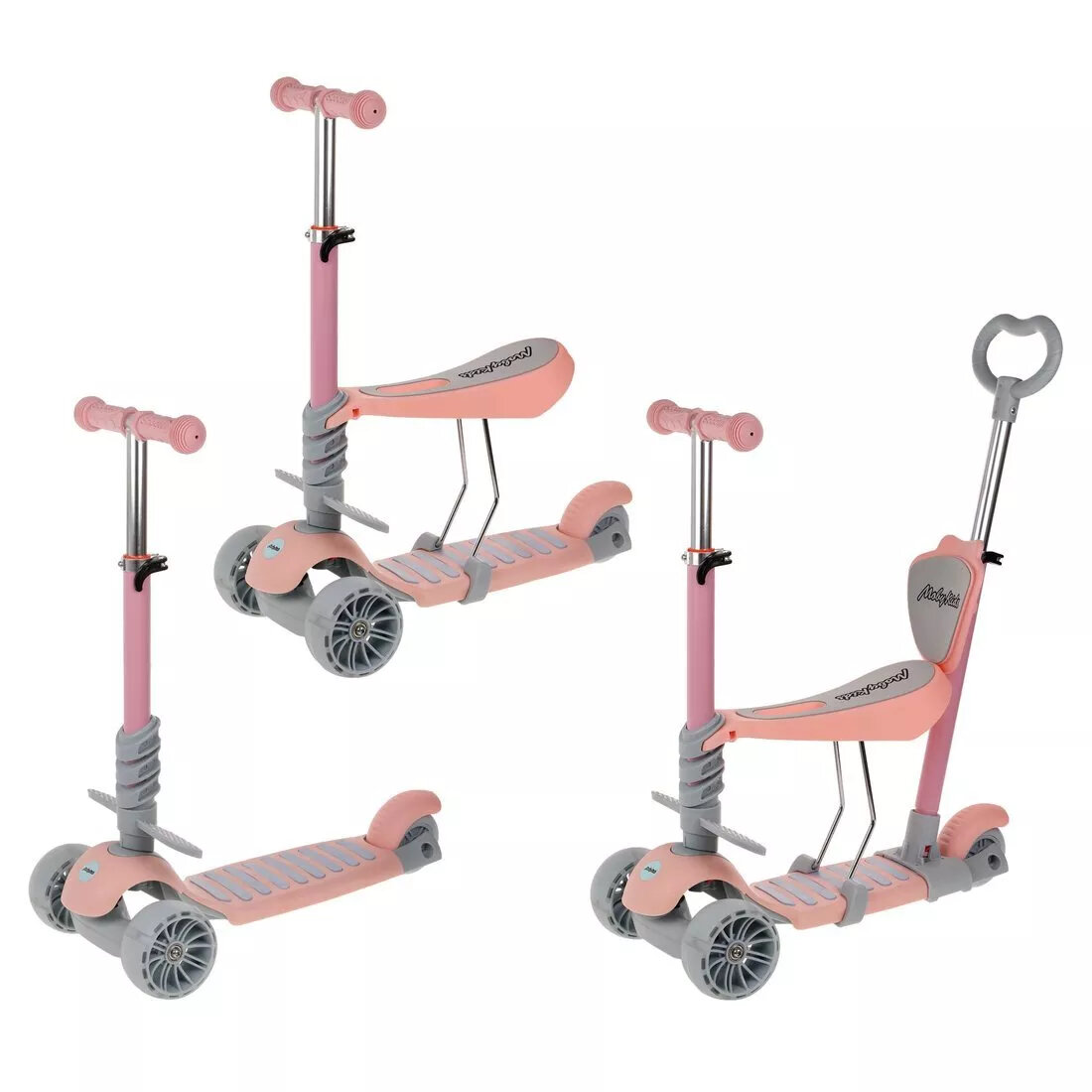 Самокат Moby Kids Pony 3 в 1, со светом, розовый
