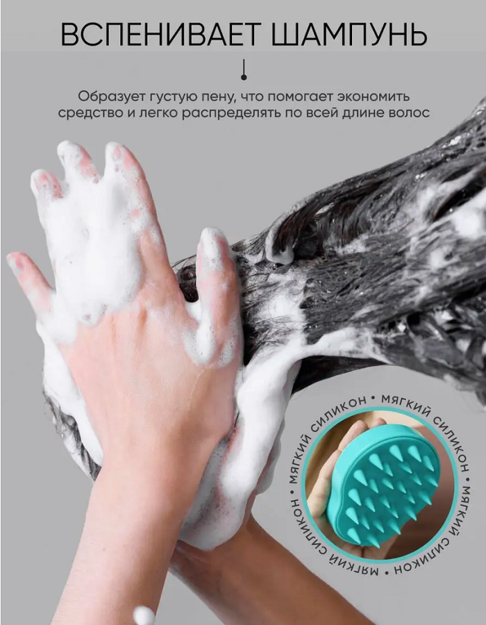 | Плюсы: | удобный форм-фактор, не царапает кожу головы, хорошо вспенивает и массирует |