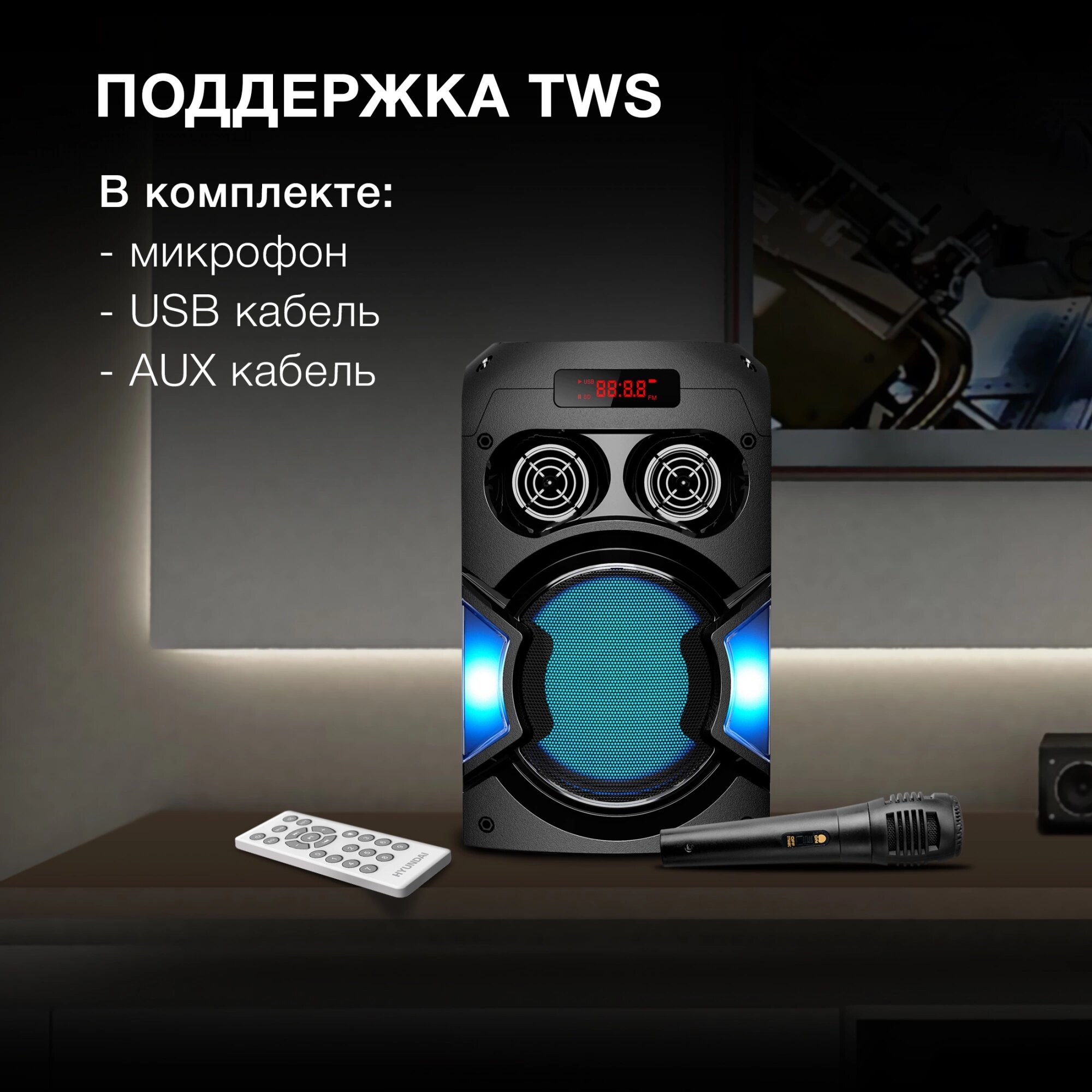| Подробная комплектация | USB кабель, AUX кабель, пульт управления, инструкция |