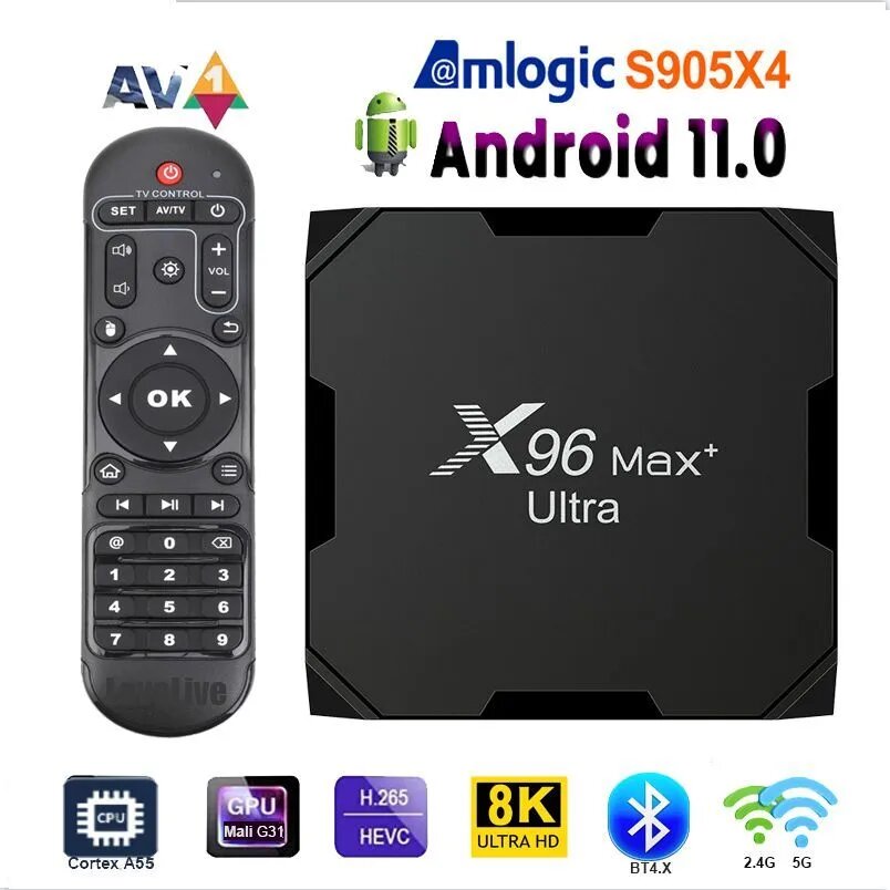 Смарт приставка для цифрового тв X96 Max Plus Ultra медиаплеер 4/32 ГБ,андроид 11,Amlogic S905X4 Wi-Fi 2.4G/5G