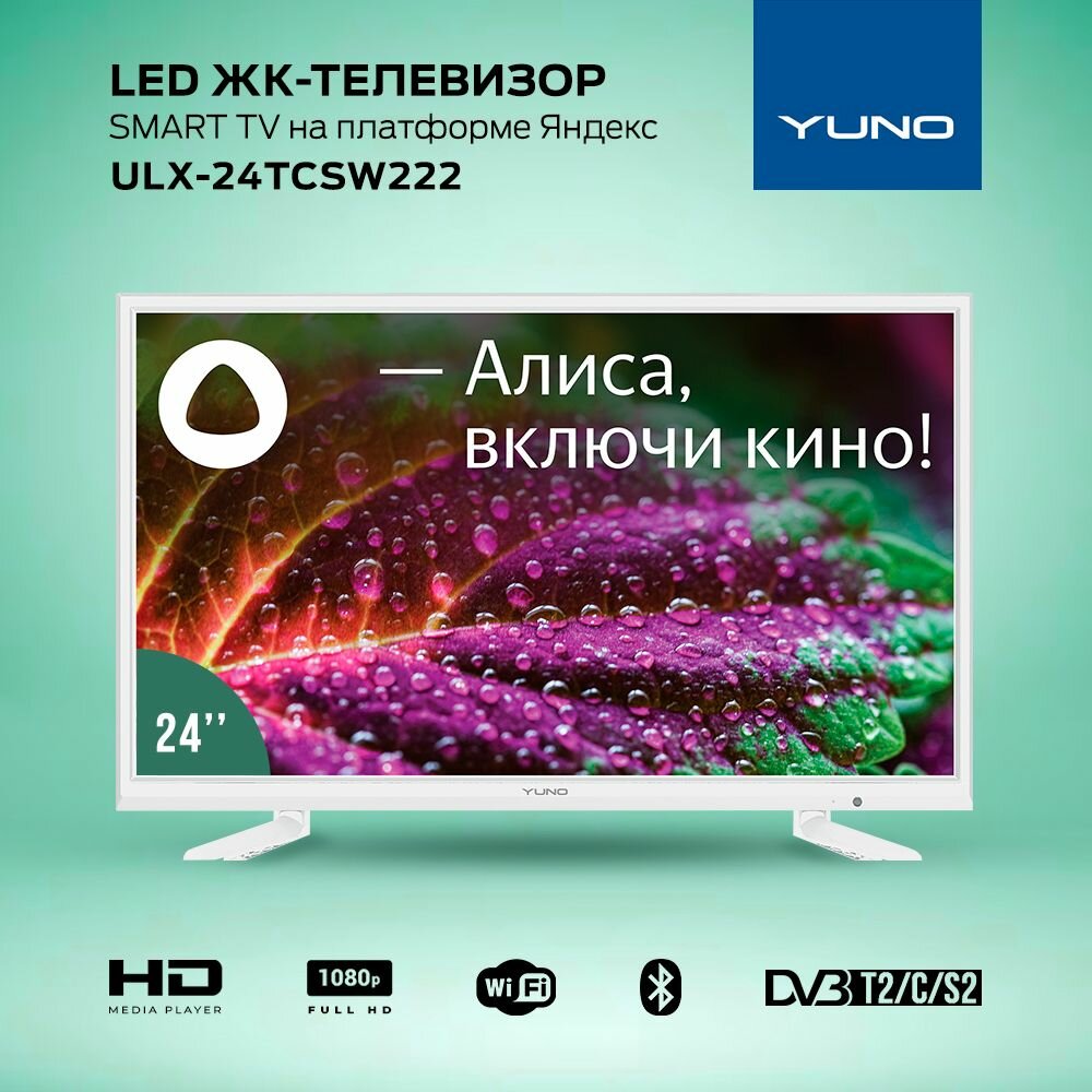Телевизор YUNO LED 24" ULX-24TCSW222 Яндекс.ТВ белый HD 50Hz DVB-T2 DVB-C DVB-S2 WiFi Smart TV (RUS)