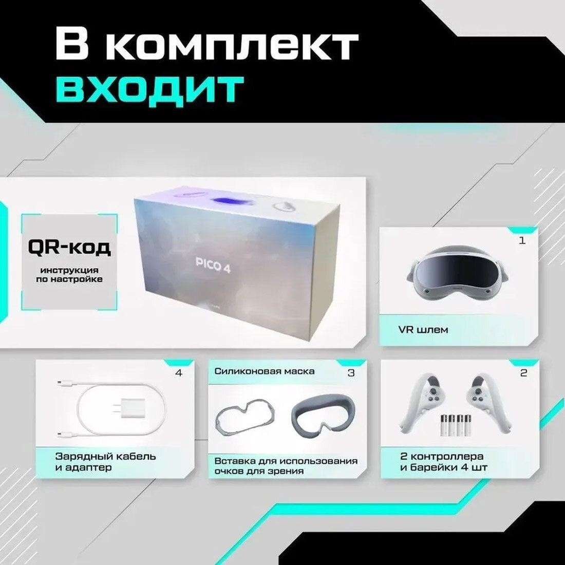 Система Шлем VR Pico 4 VR 128GB 4320x2160, 128 ГБ, 90 Гц, базовая, белыйКитайская прошивка