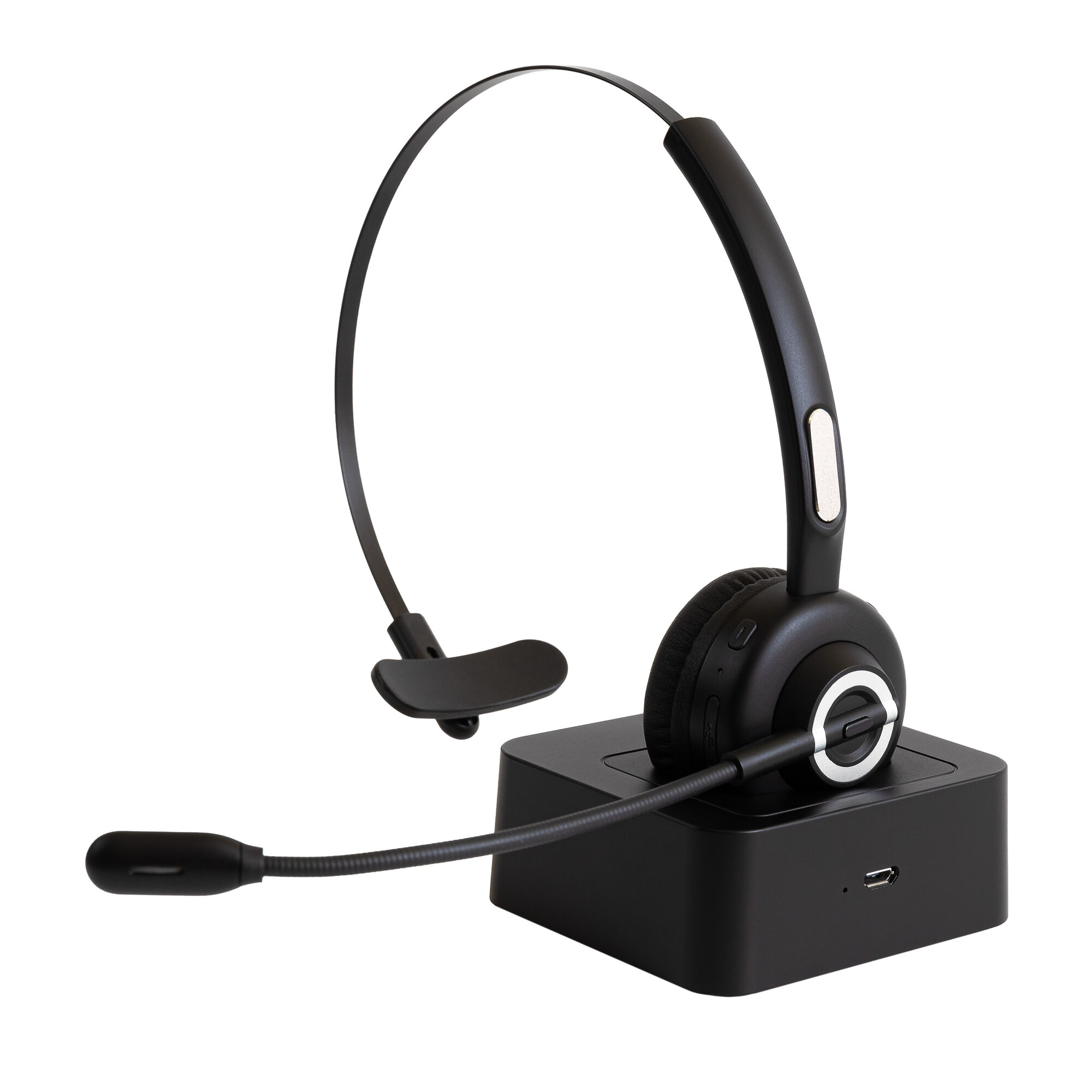 Беспроводная JazzTel M97 с микрофоном + подставка для зарядки / Bluetooth (5.0) / шумоподавление, подключение к 2 устройствам / гарнитура / наушники для компьютера (ПК), Mono, черный (black) (JazzTel M97)