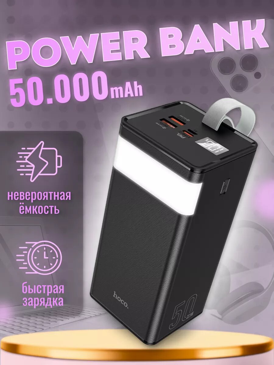 Внешний аккумулятор повербанк 50000 mAh/Быстрая зарядка/Hoco J86A/Черный