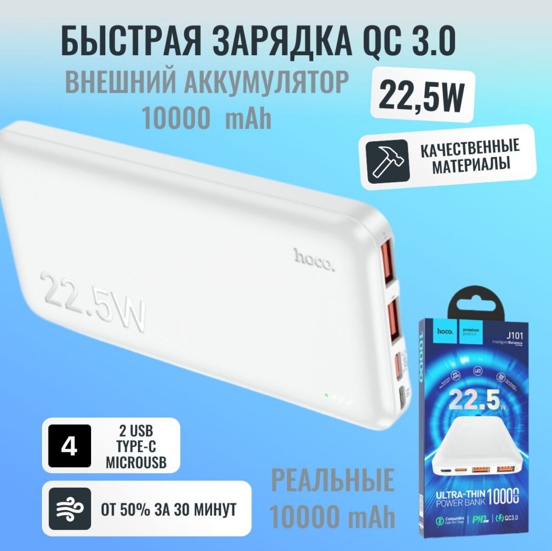 Купить HOCO (6931474782489) J101 Astute 22.5W fully compatible 10000 mAh (белый)