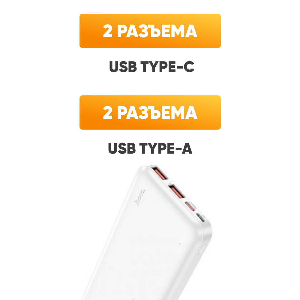 Внешний аккумулятор 10000 mAh HOCO J101 (2USB/PD/Micro/LED инд. бат) белый