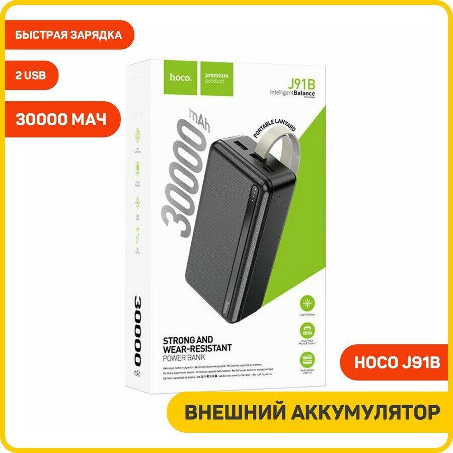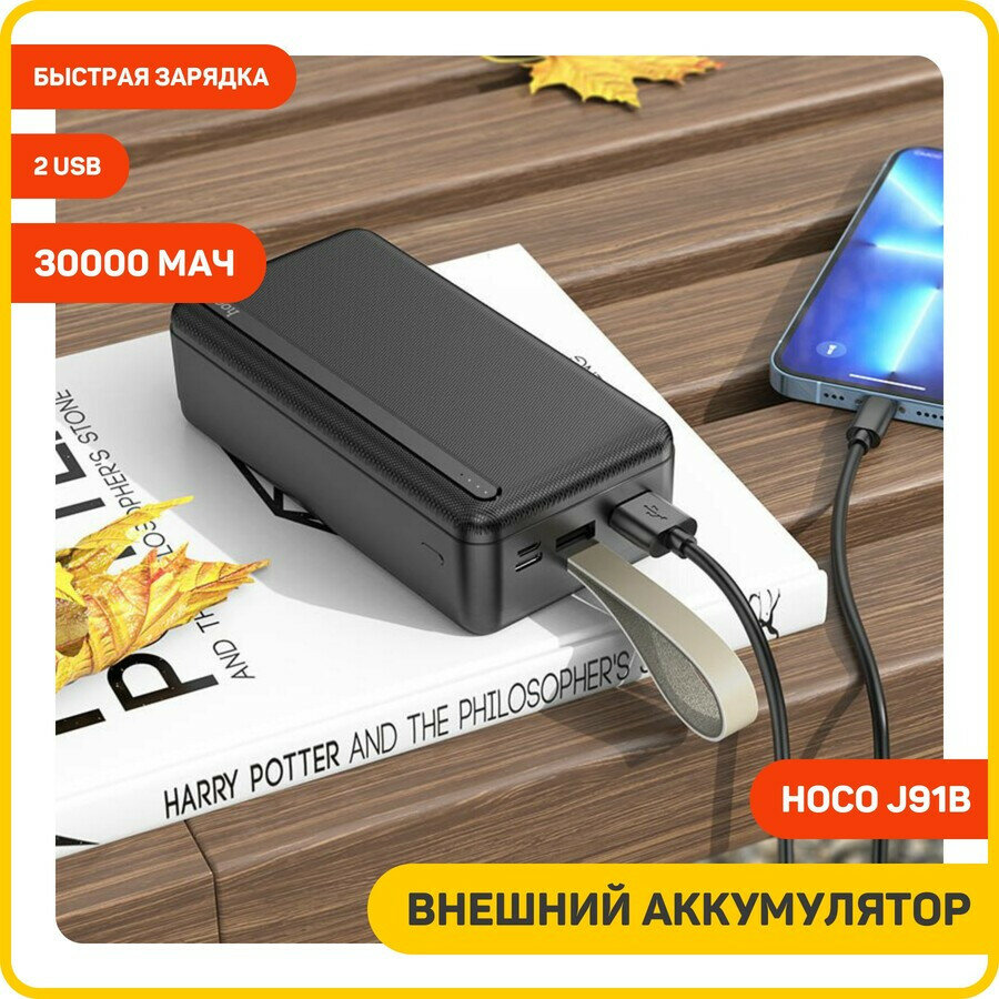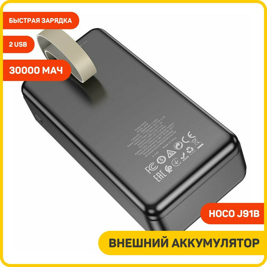 Универсальный Доп. Аккумулятор 30000mAh, J91B, HOCO, выход 2 USB (2.1A), вход Micro/Type-C, черный