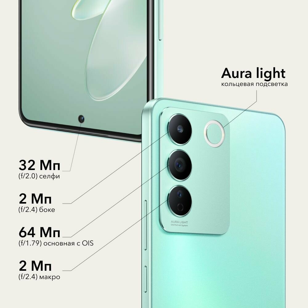 Смартфон vivo V27e 8/128 ГБ, Dual nano SIM, морской зеленый