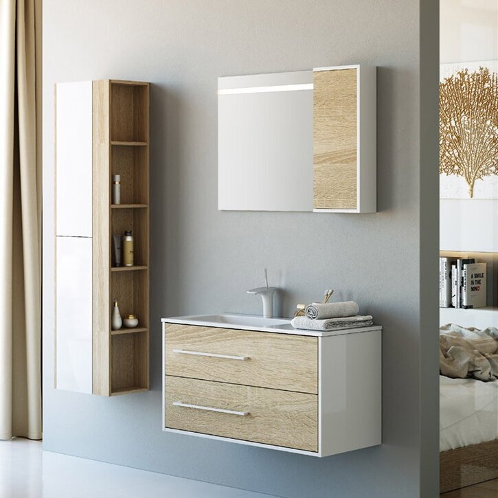 Тумба под раковину Aqwella 5 Stars Miami 90 Mai.01.09/L Дуб сонома Белая