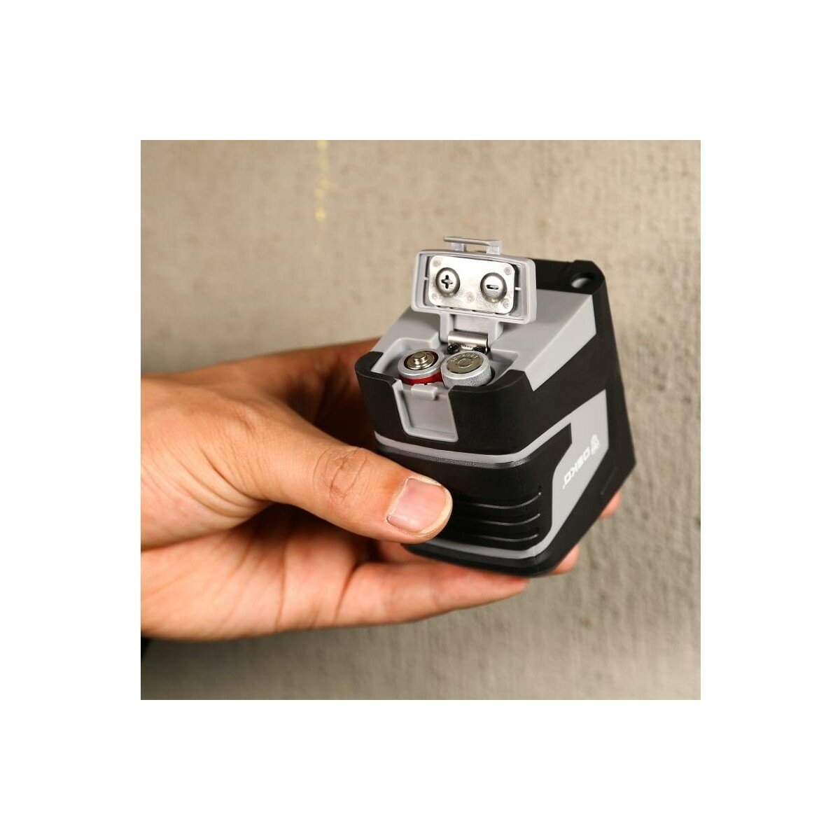Классный нивелир, лучи которого можно выставлять по отдельности, либо вертикальный, либо горизонтальный, либо перекрёстные. Хорошо видно даже при ярком освещении. При блокировке сверху горит красный индикатор и можно выставлять наклонные линии. Батарейки идут в комплекте. Единственное что не хватает, так это дополнительного крепления в виде прищепки.