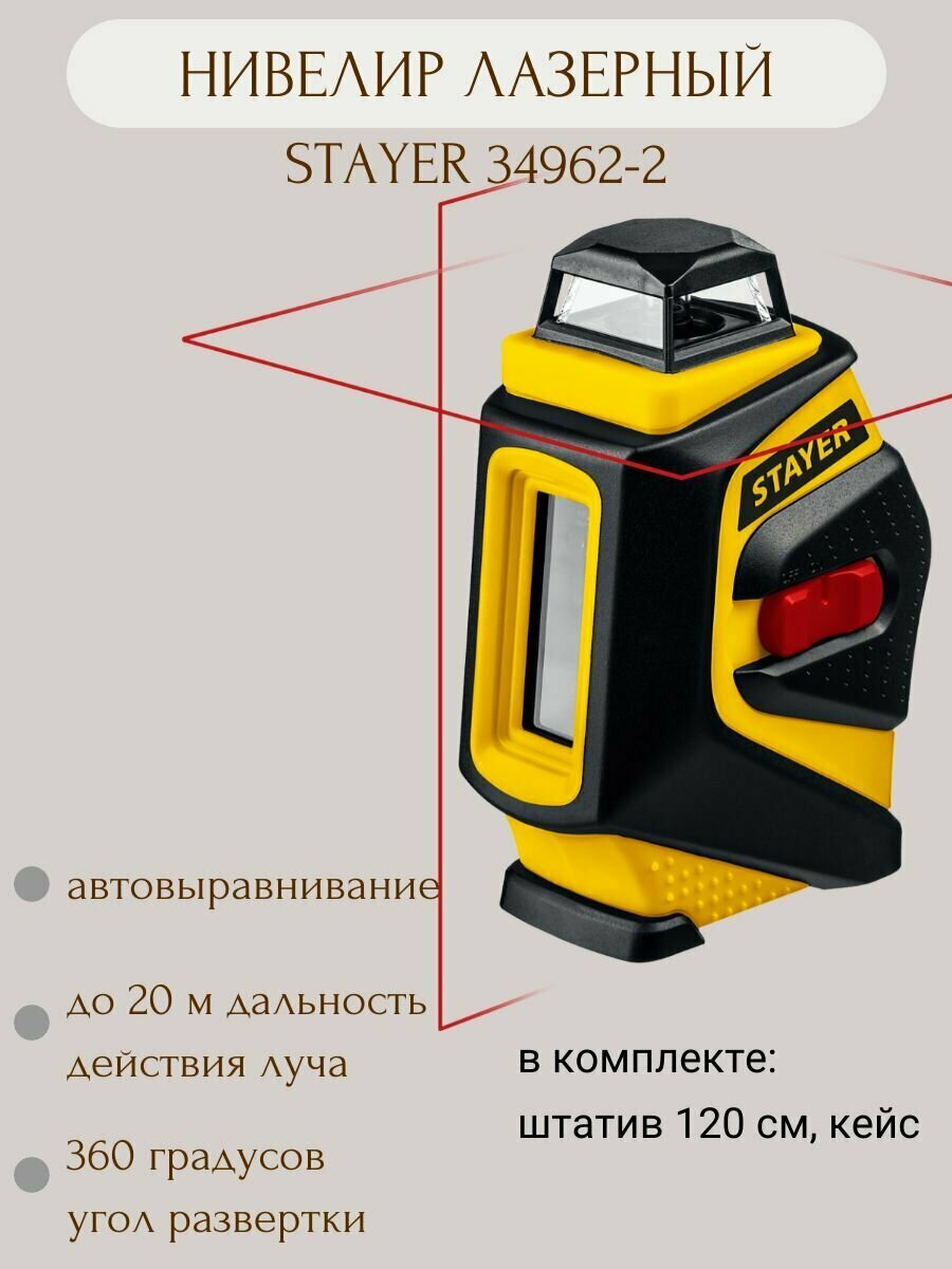 Нивелир лазерн. Stayer 34962-2 цв.луч. красный 2луч.