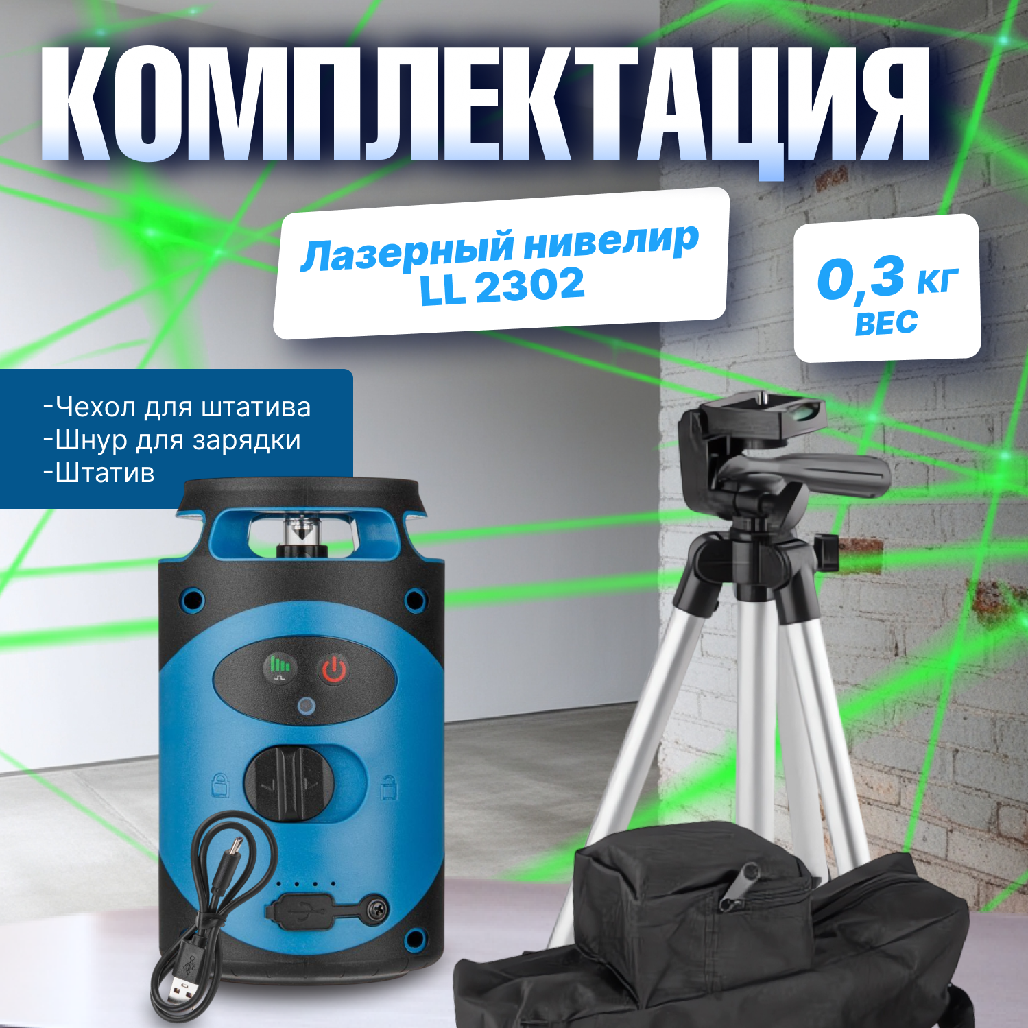 Нивелир лазерный BULL LL 2302 со штативом в кор. (проекция: 2 плоскости 360°,130°, до 30 м, +/- 0.3 мм/м, резьба 1/4\, штатив 1 м в комплекте, зелены"