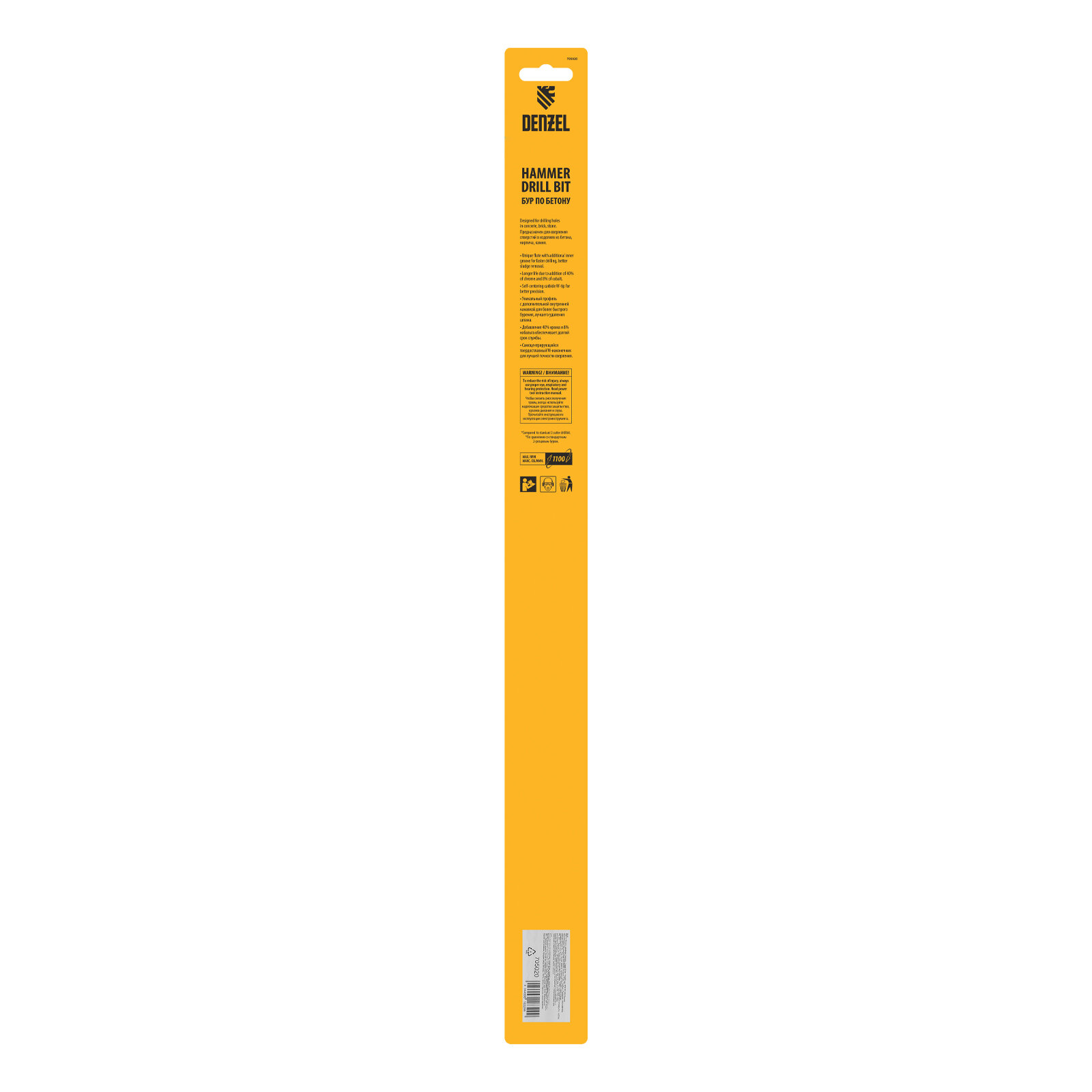 Бур по бетону, двойная спираль, Cobalt W-tip, 10x460 мм, SDS PLUS, DENZEL 705020