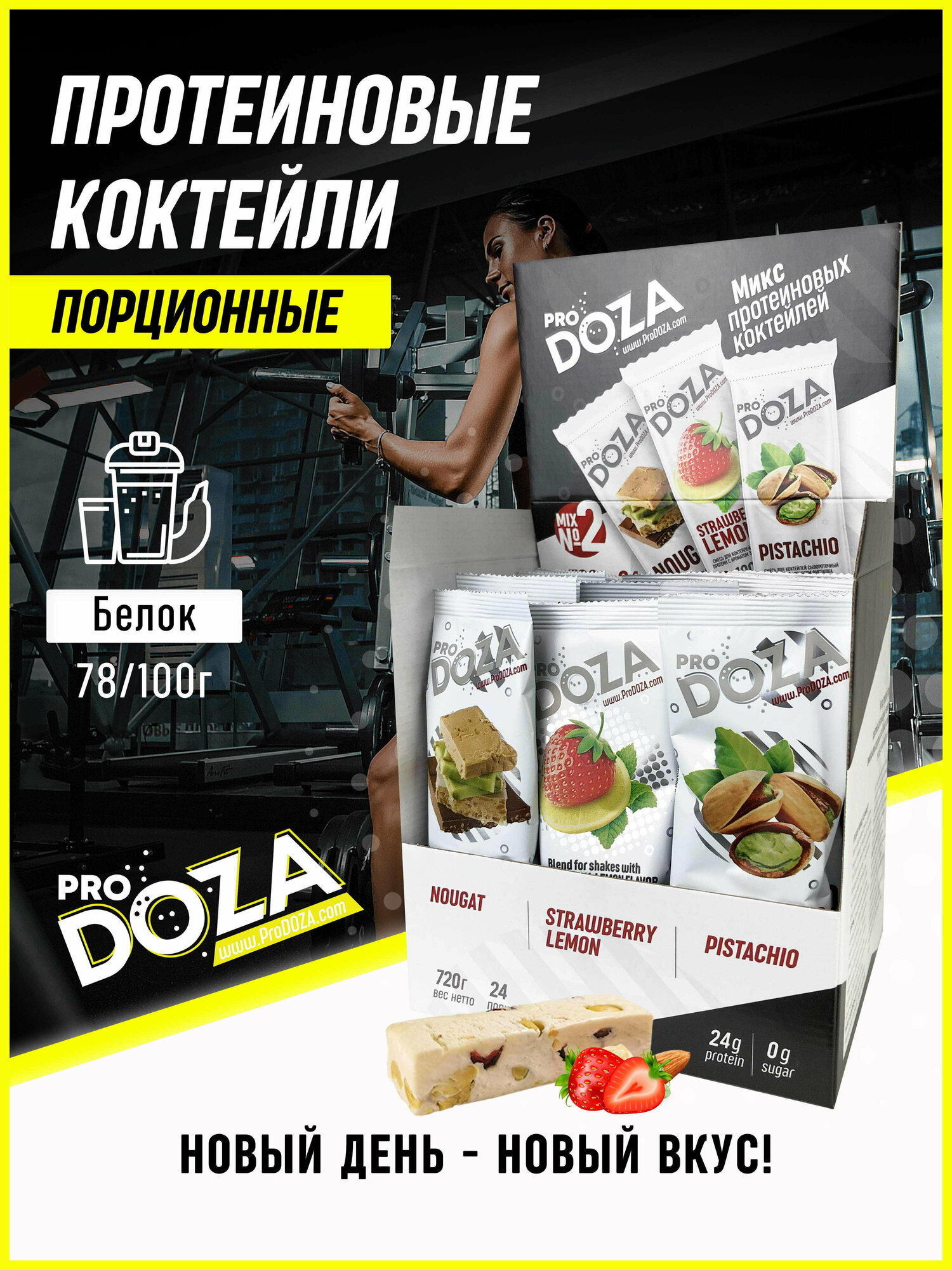 Протеиновый коктейль порционный ProDOZA Whey Protein Shake MiniMix, 6 паков по 30 г (кокос-шоколад, малина-баблгам, фисташка, нуга, земляника-лимон, кленовый сироп)