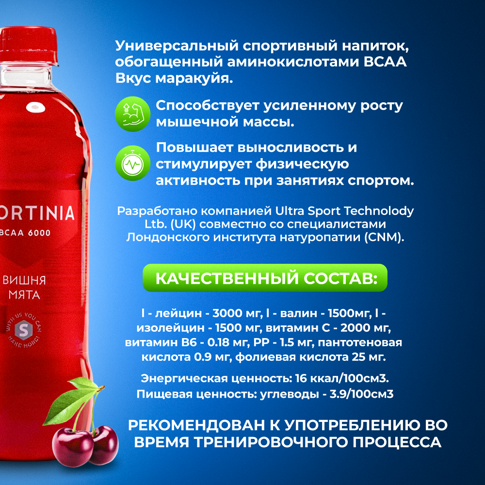 Купить Спортивное питание BCAA, аминокислоты Вишня-Мята 12 бутылок по 500 мл.