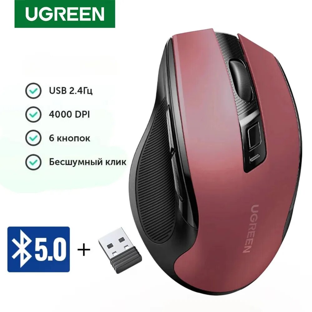 Купить Мышь беспроводная Ugreen MU006 (25752), 2.4G 4000DPI, 2.4 GHz&BT, красный