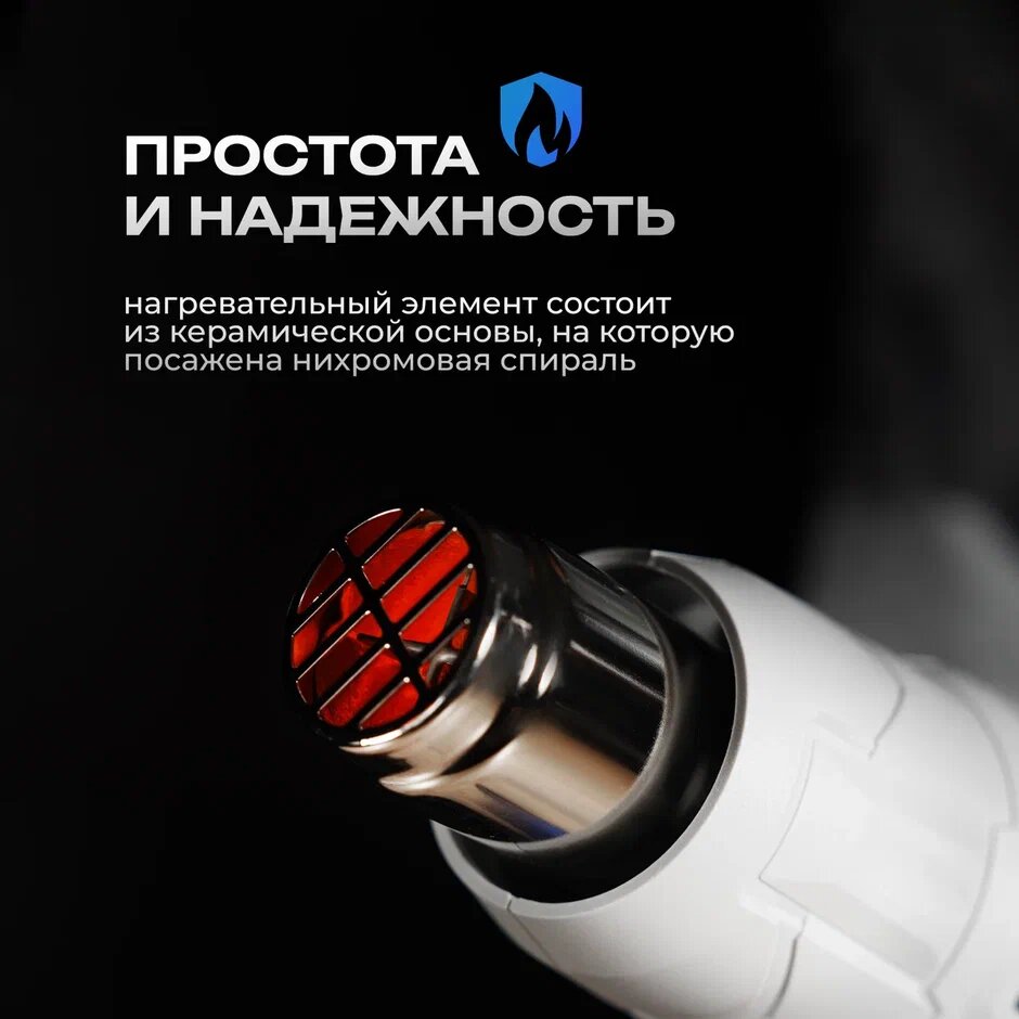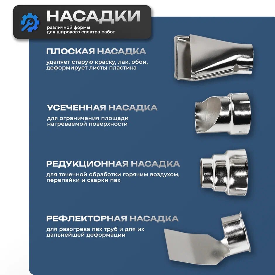 Фен технический (строительный), ЗУБР ФТ-2000, насадки 3 шт, 2 режима: 350град/ 350л/мин, 650град/ 550л/мин, коробка, 2000Вт