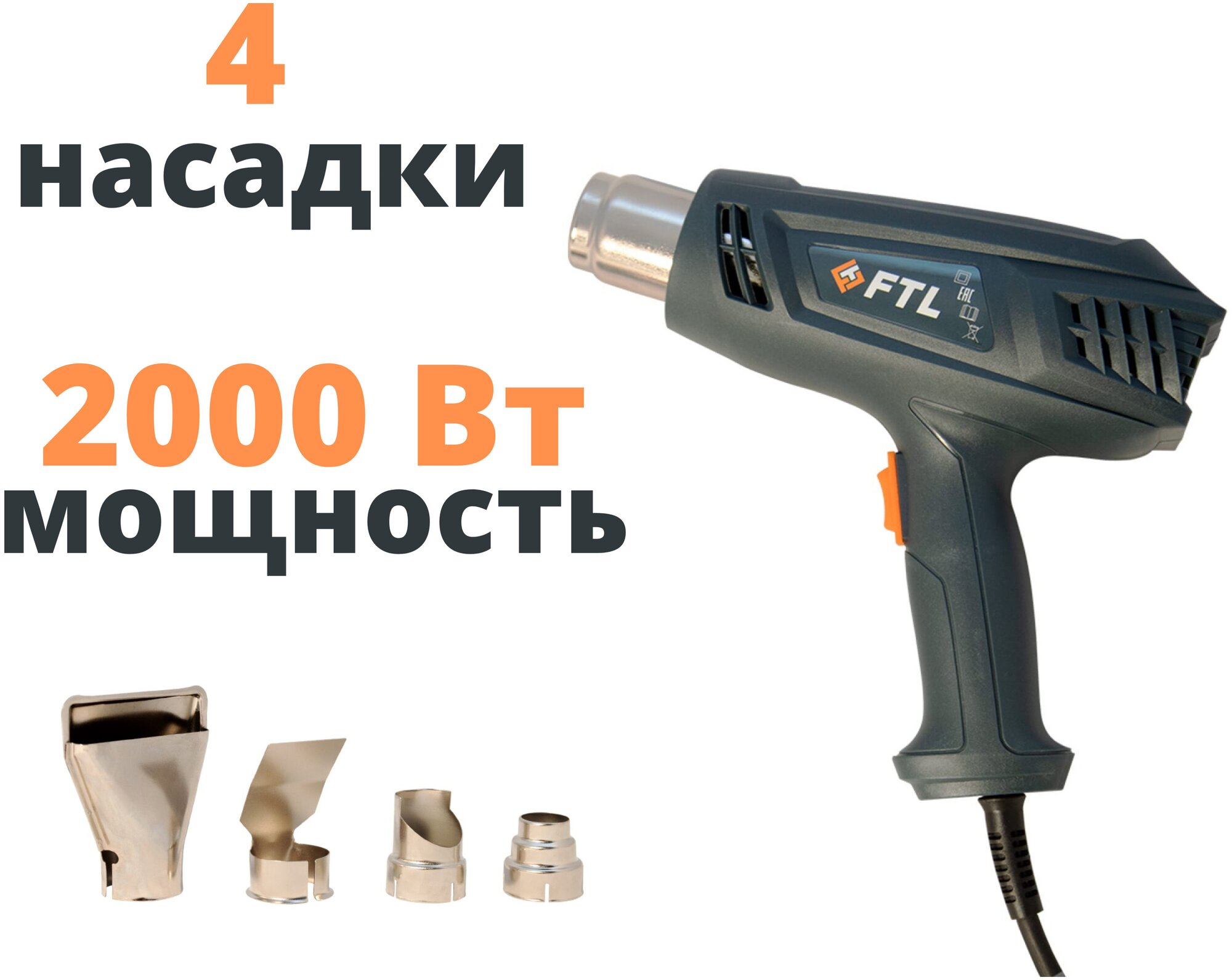 Фен технический (строительный), ЗУБР ФТ-2000, насадки 3 шт, 2 режима: 350град/ 350л/мин, 650град/ 550л/мин, коробка, 2000Вт