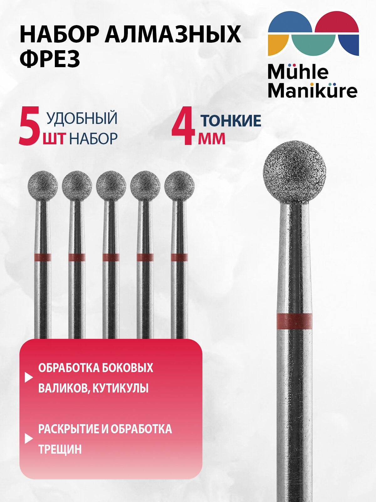 Фреза для маникюра и педикюра алмазная Muhle Manikure для кутикулы 806 001 524 040 Средняя шар (упаковка 5 шт)