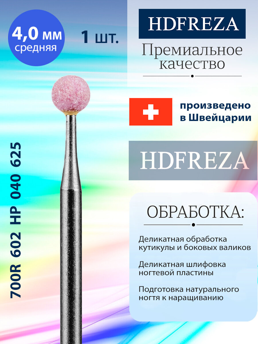 Фреза корундовая для маникюра и педикюра безопасная HDFREZA шлифовщик 700R 602 HP 040 625 Средний шар интересное: