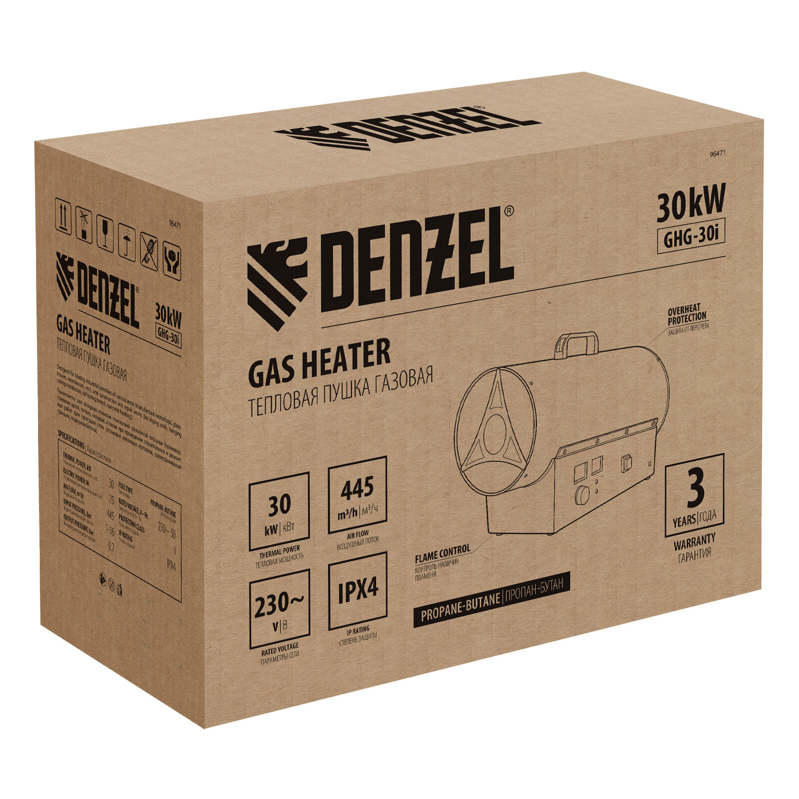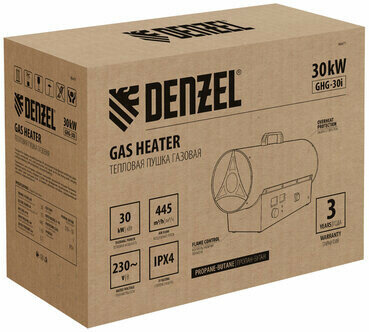 Купить Газовая тепловая пушка GHG-30i, 30 кВт, цифровой термостат, пропан-бутан Denzel