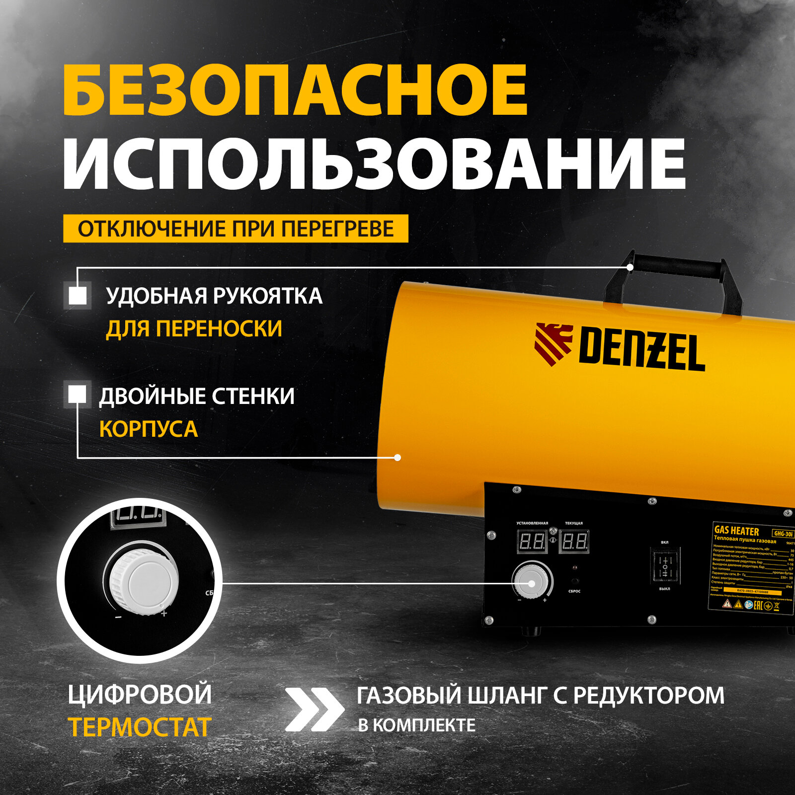 СохранитьГазовая тепловая пушка GHG-30i, 30 кВт, цифровой термостат, пропан-бутан Denzel интересное: