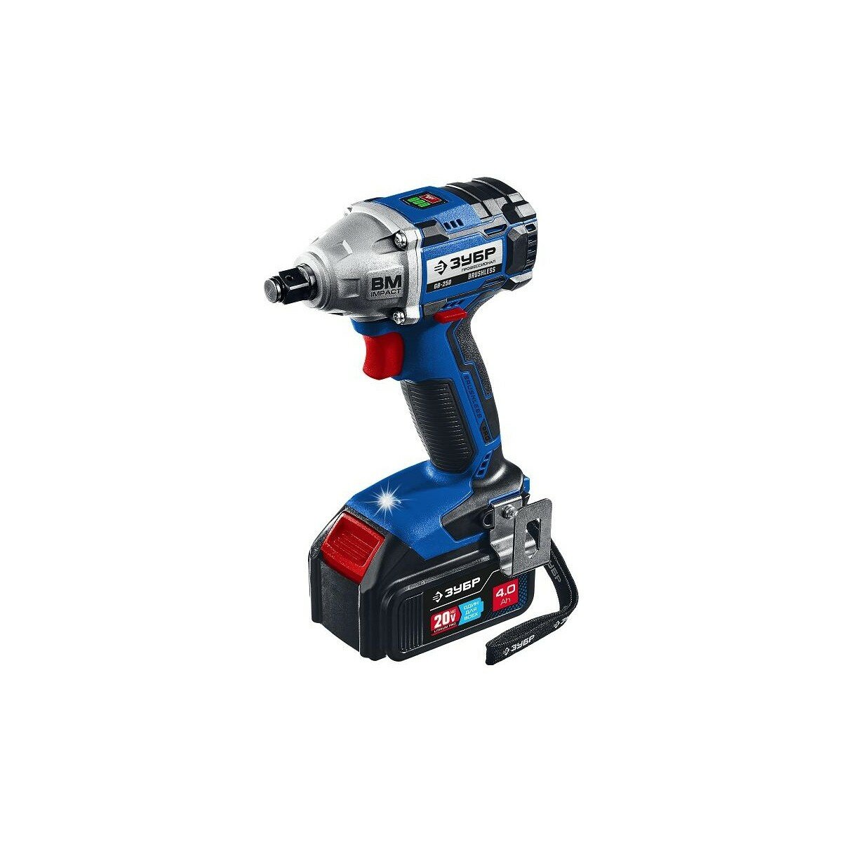 Бесщеточный гайковерт Зубр 20В 2 АКБ 4Ач) в кейсе Профессионал. (GB-250-42)