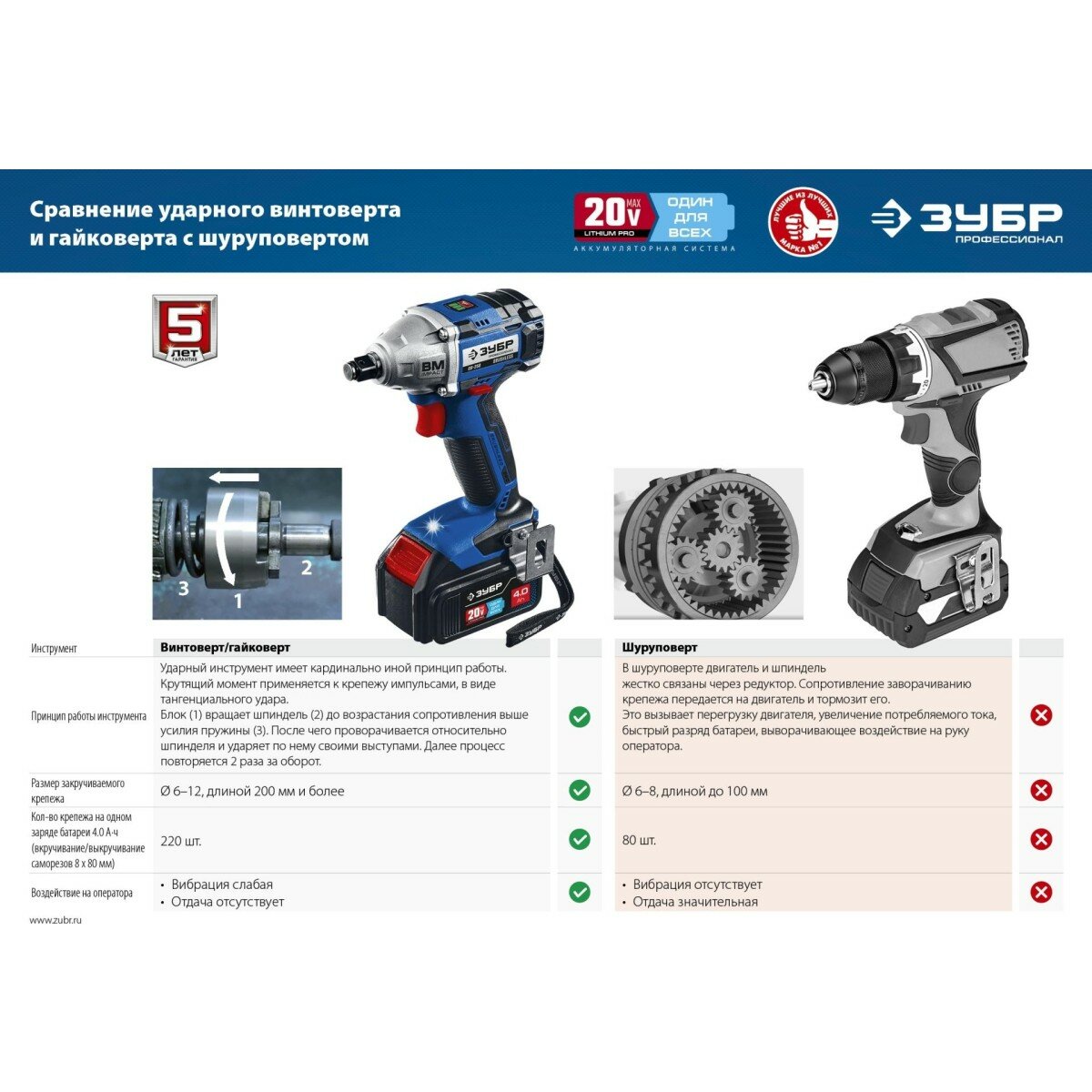 Ударный гайковерт Зубр GB-250-42 4Ач, с двумя аккумуляторами