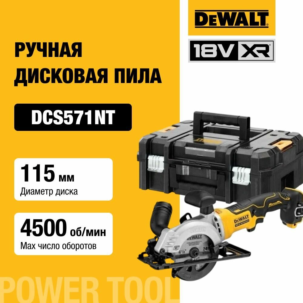 Купить Пила циркулярная DEWALT DCS571NT, 18 В, 115 мм, 4500 об/мин, без АКБ и ЗУ, в кейсе TSTAK
